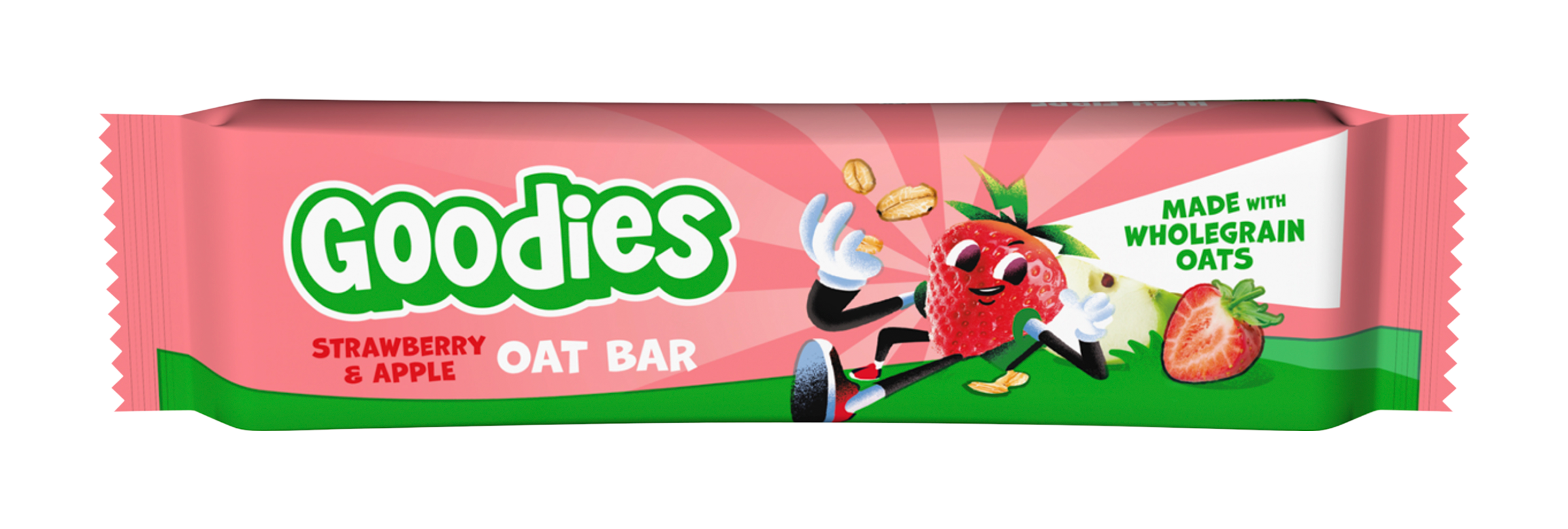 Goodies ovesná tyčinka jahody a jablko s celozrnnými ovesnými vločkami a vysokým obsahem vlákniny. Žádné přidané cukry, plno skvělé chuti. Šťavnatá a měkká svačinka, ideální na cesty nebo do svačinkových boxíků. Goodies ovesné tyčinky obsahují samé dobré ingredience. Jsou vyrobeny z celozrnných ovesných vloček a slazené pouze ovocem. Neobsahují přidaný cukr ani sůl. Velikostí přesně padnou do dětských rukou a zaženou malý hlad nebo chuť na sladké.
