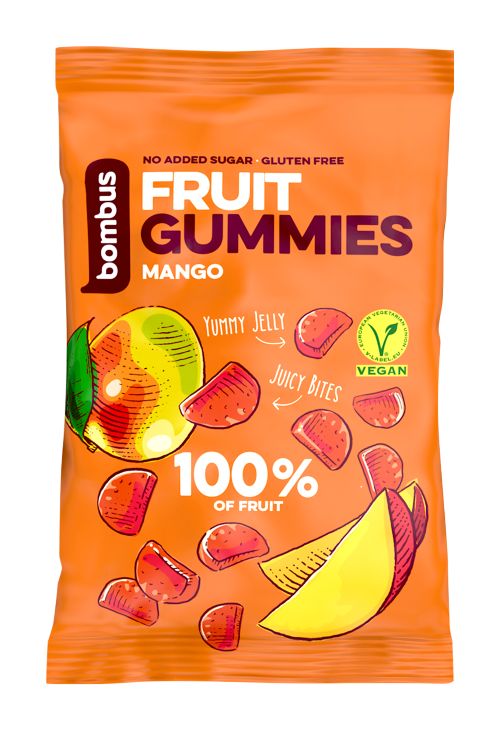 Ovocné bonbónky FRUIT ENERGY mango gummies. Exotické mango gummies si okamžitě zamilujete díky svěží a lahodné ovocné chuti! 100 % z ovoce a žádný přidaný cukr, barviva ani konzervanty. Zdravá alternativa přeslazených cukrovinek, bez kompromisů.