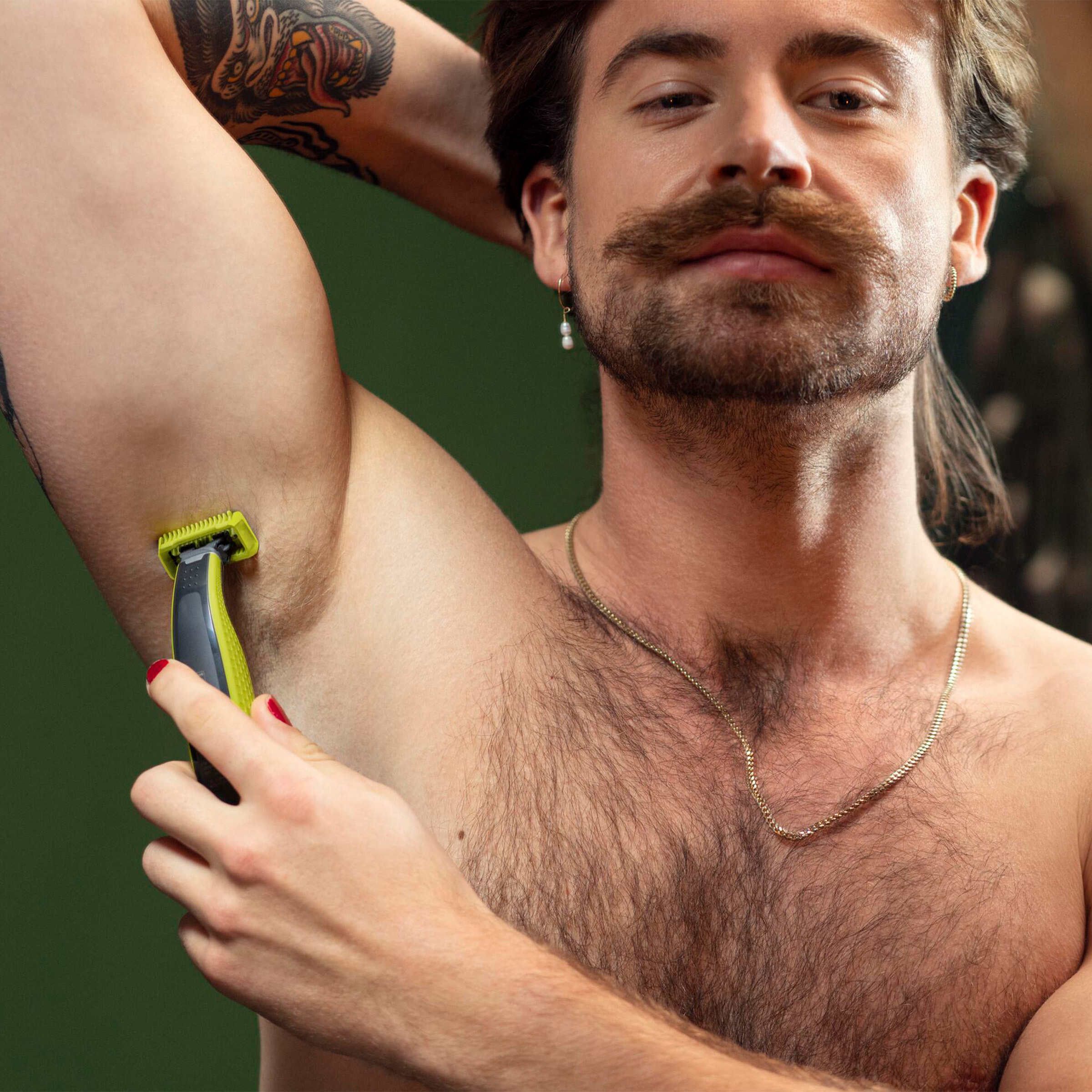 - Zastřihovač OneBlade nestříhá tak blízko pokožce, jako tradiční žiletka, takže vám nepodráždí kůži. Běžte proti proudu a oholte si jednoduše vousy a chloupky jakékoli délky na obličeji i těle. Je vybaven dvěma břity - jedním pro obličej a druhým na tělo.