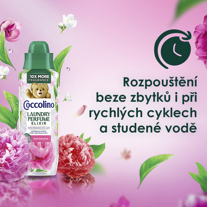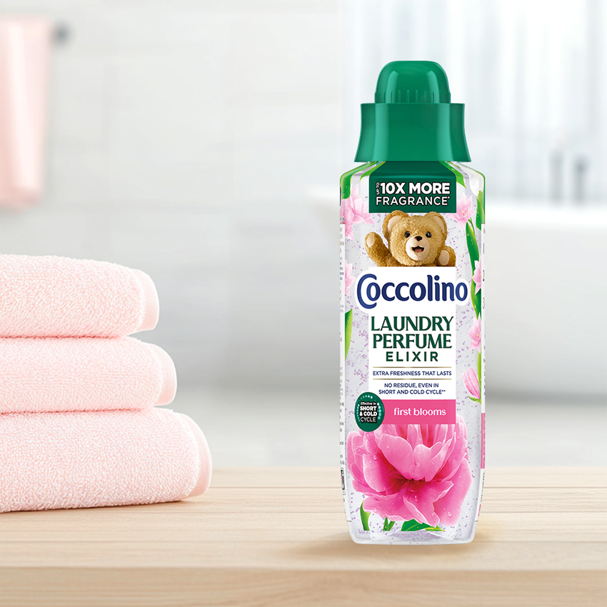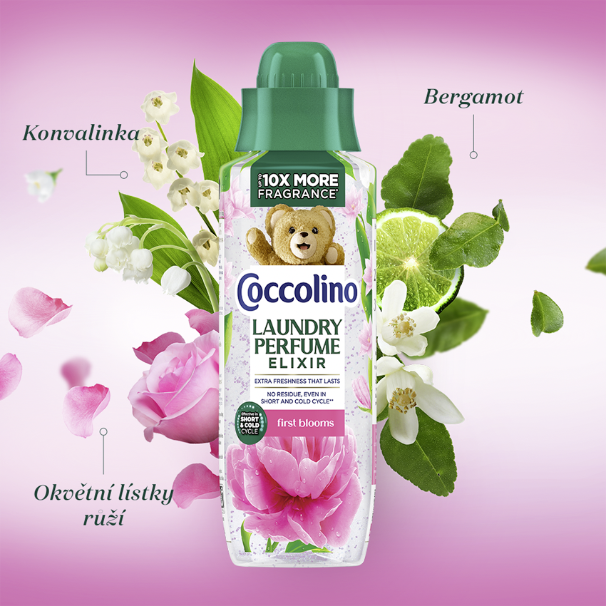 Zažijte až 10x voňavější zážitek s Coccolino parfémem na praní. Coccolino parfém na praní, First Bloom, vás omámí vůní okvětních lístků růží, konvalinek a bergamontu.