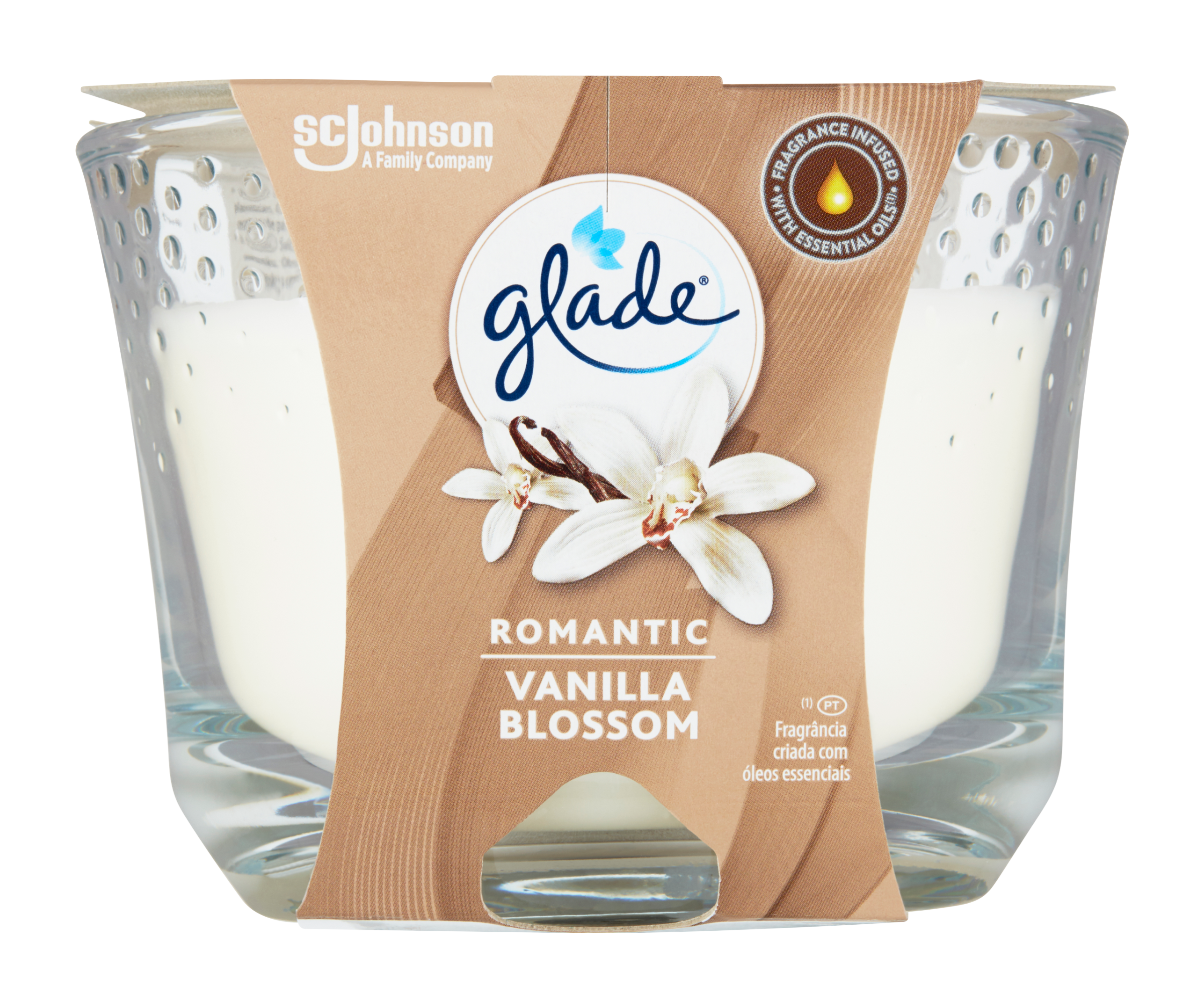 Čtěte informace na obale. Nedodržení následujících instrukcí může způsobit požár nebo poranění. Zapálená svíčka musí stát na tepelně odolném povrchu. Osoby s přecitlivělostí na vůně by měly tento výrobek používat s opatrností. Osvěžovače vzduchu nemohou nahradit správné hygienické návyky. Glade® MAXI Candle - Romantic Vanilla Blossom, parfémovaná svíčka. Škodlivý pro vodní organismy, s dlouhodobými účinky. Uchovávejte mimo dosah dětí. Obsahuje 1-(1,2,3,4,5,6,7,8-octahydro-2,3,8,8-tetramethyl-2-naphthyl)ethan-1-one, 2-(4-tert-butylbenzyl)propionaldehyde. Může vyvolat alergickou reakci.