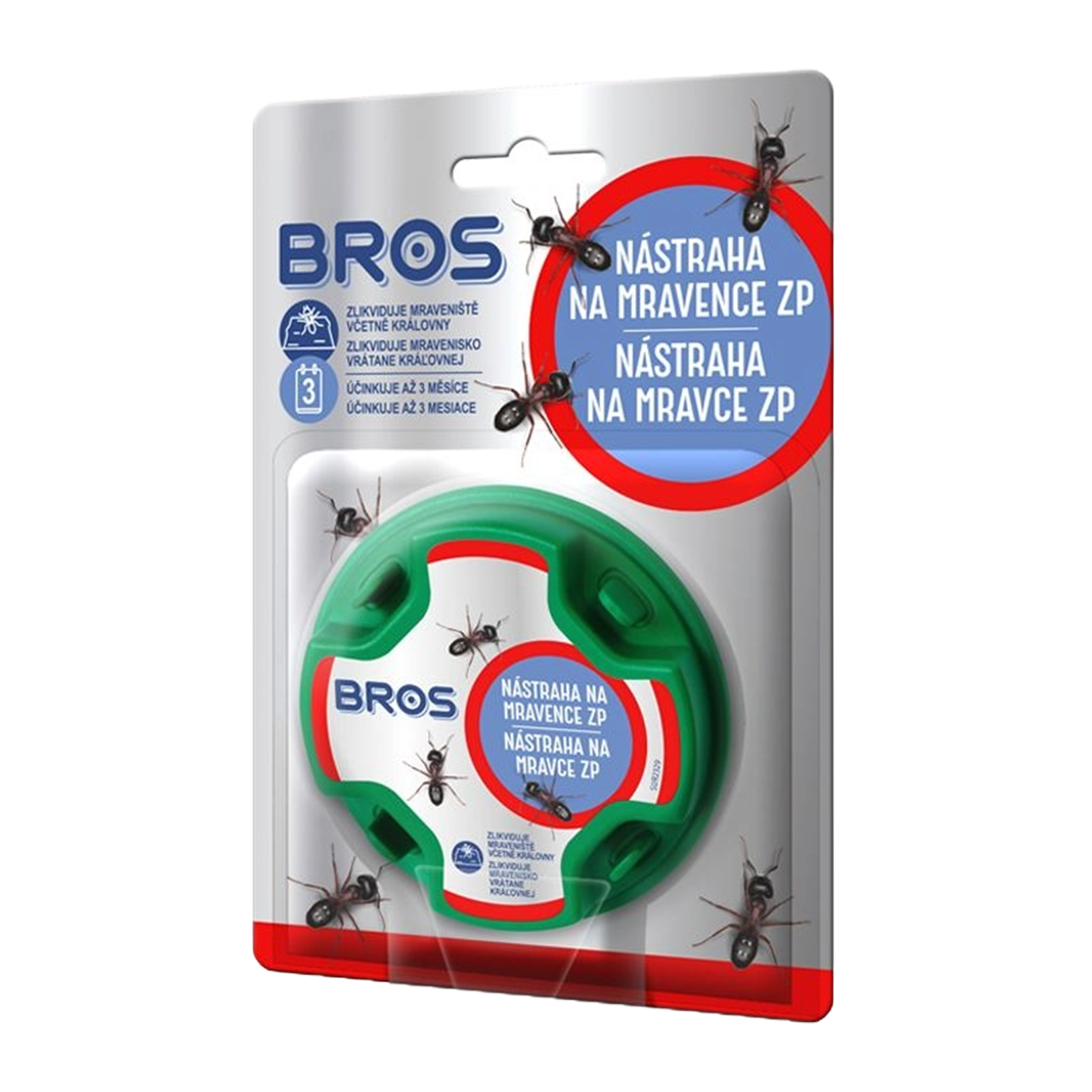Past na mravence v podobě domečku s návnadou. Přípravek je k okamžitému použití, určený k likvidaci mravenců v interiéru i v jejich bezprostřední blízkosti, např. na terasách, balkonech, altáncích, cestách, příjezdových cestách atd. Domeček chrání přípravek před deštěm, a dělá přípravek nedostupný dětem a domácím mazlíčkům. Ničí celou kolonii včetně královny. Účinkuje 3 měsíce od aktivace.