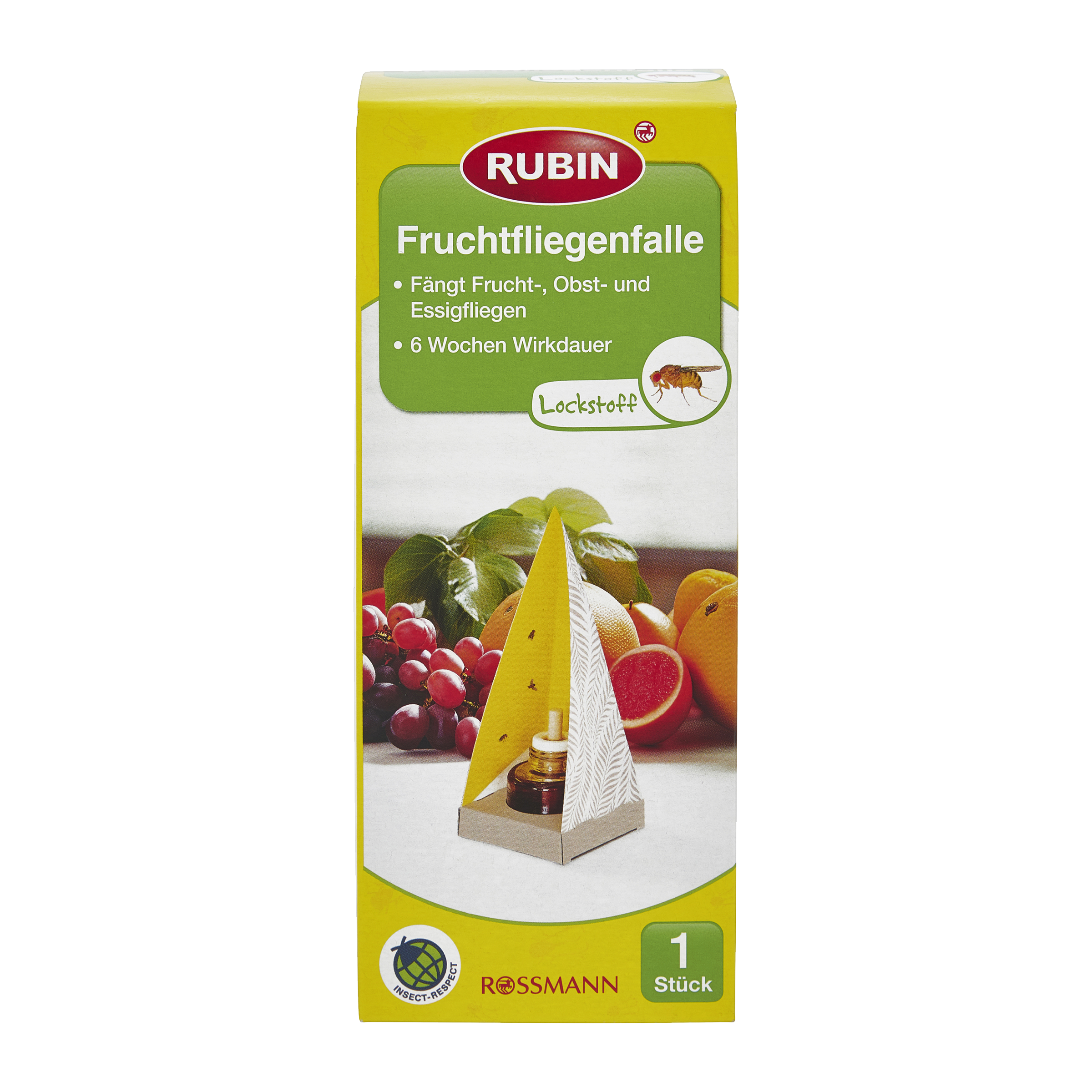 Lapač bez insekticidů pro detekci napadení ovocnými, ovocnými a octovými muškami. Mouchy jsou přitahovány přírodními atraktanty a žlutou barvou pasti a spolehlivě drží na místě díky aplikovanému lepidlu. Napadení hmyzem tak lze odhalit v raném stádiu a zahájit vhodná kontrolní opatření.