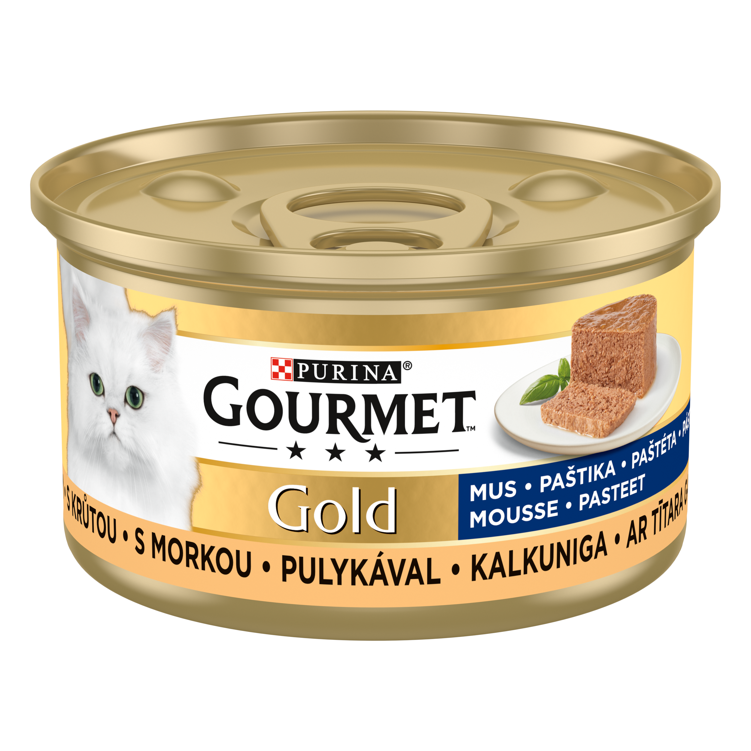 GOURMET Gold paštiky: Jemné paštiky s hovězím, kuřetem, lososem a dalšími vynikajícími příchutěmi, pečlivě připravené tak, aby nabídly vaší kočce požitek z delikátní a jemné textury. Všechna krmiva GOURMET Gold jsou vyrobena z vysoce kvalitních surovin a jsou bez přidaných barviv a umělých konzervantů.