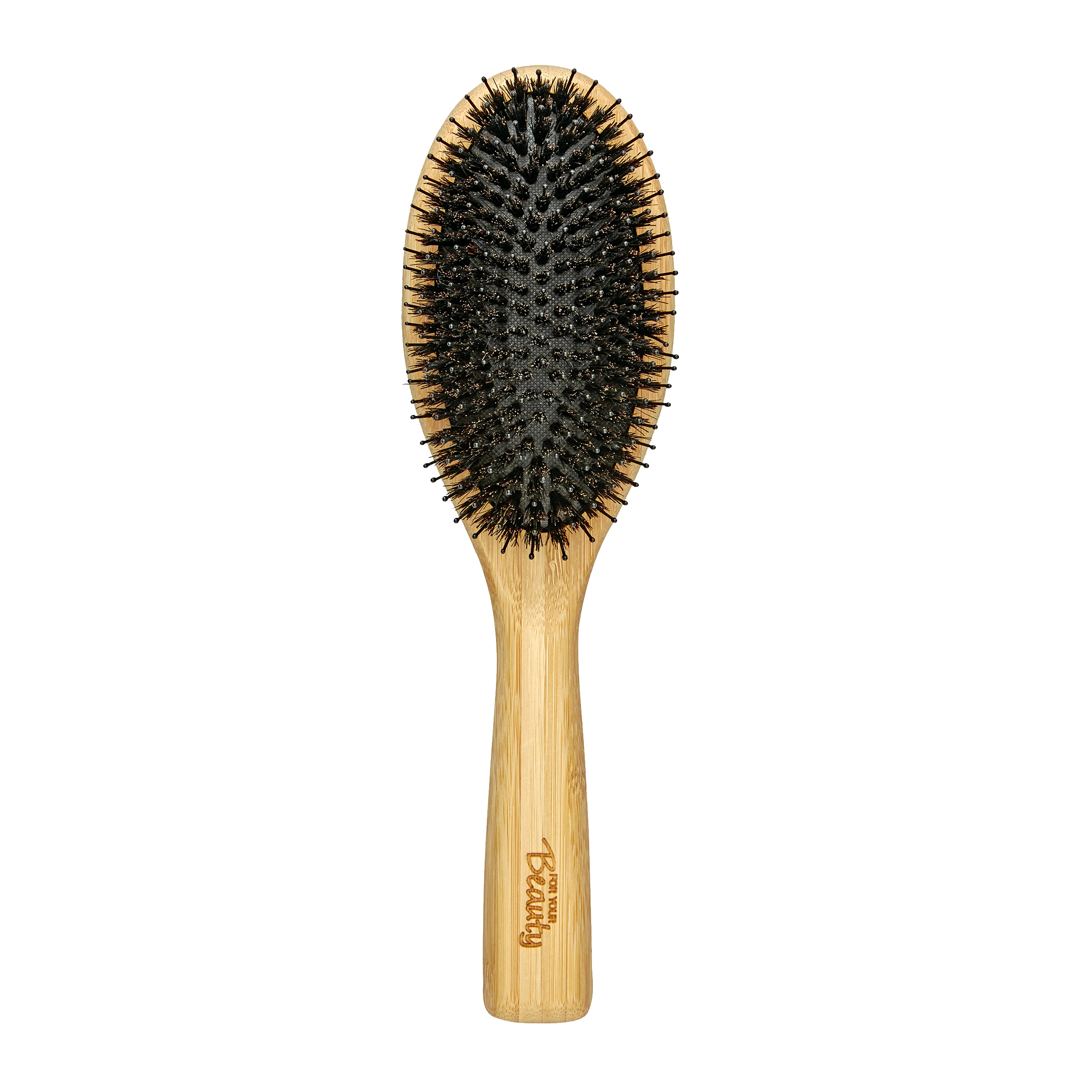 Kartáč je ideálním řešením pro denní styling a péči o vaše vlasy, ať už je mají jakoukoliv délku. Praktický hřeben v jednom kroku pečuje a upravuje vlasy. Elastický kartáčový polštář s plastovými štětinami pro snadné rozčesávání a kančími štětinami pro dokonalý lesk. Štětiny jsou obohaceny turmalinem a kartáč má antistatický účinek. Zaoblené plastové štětiny stimulují pokožku hlavy uklidňující masáží a podporují krevní oběh.