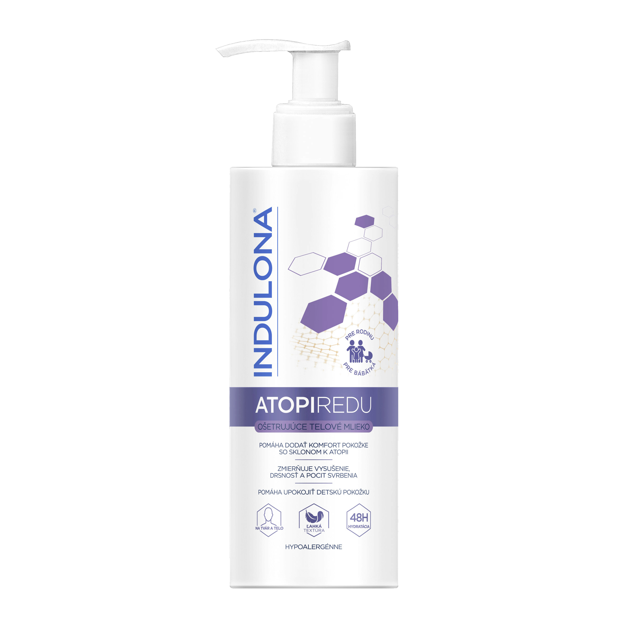 Pečující tělové mléko Atopiredu od Indulony bylo speciálně vyvinuto pro intenzivní péči o extrémně suchou pokožku. Jeho vysoce hydratační a zklidňující složení přináší okamžitou úlevu citlivé pokožce se sklony k atopii. Pomáhá zmírnit vysušení, drsnost a svědění, čímž zajišťuje komfort po celý den. Jemné složení obohacené o výjimečnou kombinaci vazelíny, organického extraktu z ovsa, panthenolu, kyseliny hyaluronové, glycerínu a dextrinu hydratuje a tím napomáhá hojení suché pokožky, vyživuje, pomáhá obnovit přirozenou bariéru pokožky a poskytuje jí dlouhotrvající komfort. Mléko má lehkou texturu, která se snadno vstřebává.
