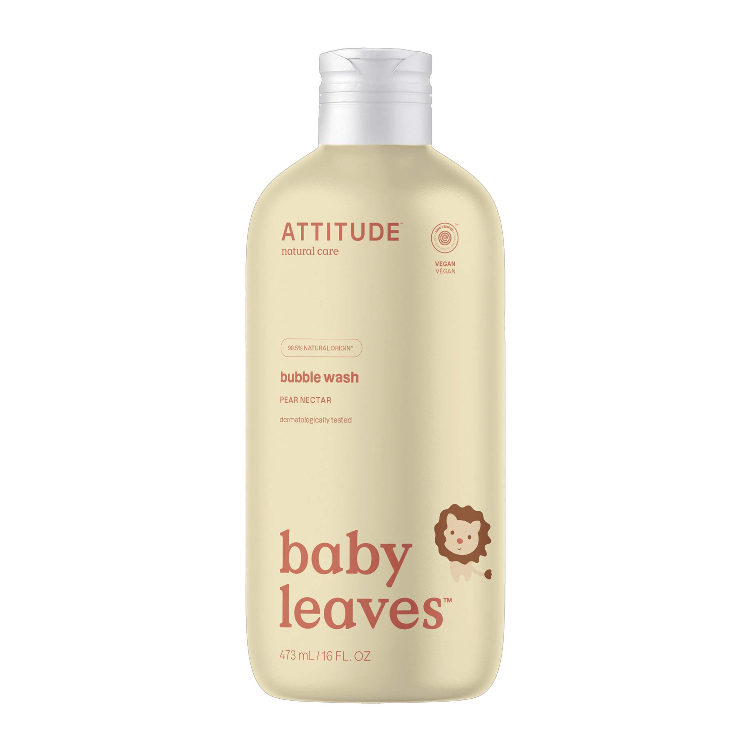 Příjemná vůně hruškové šťávy, která pochází výhradně z přírodních zdrojů. Výjímečně velké balení (473 ml) = přívětivá cena. Také má certifikaci EWG ("Environmental Working Group"), která pomáhá lidem vybírat jen ty zdravé, bezpečné a k přírodě šetrné produkty. Kosmetika Baby leaves leaves získala od této neziskové organizace nejvyšší hodnocení. Všechny produkty ATTITUDE jsou bez živočišných složek, netestované na zvířatech. ATTITUDE je členem programu PETA („People for the Ethical Treatment of Animals“), což je největší nezisková organizace bojující za práva zvířat na světě. Nepřítomnost škodlivých látek je testována nezávislou laboratoří. Pro výrobu produktů ATTITUDE jsou použity 100% obnovitelné zdroje energie. 100% recyklovatelný obal. Ve výrobcích ATTITUDE najdete jen složky šetrné k našemu zdraví („worry-free ingredients“), a to bez kompromisů.