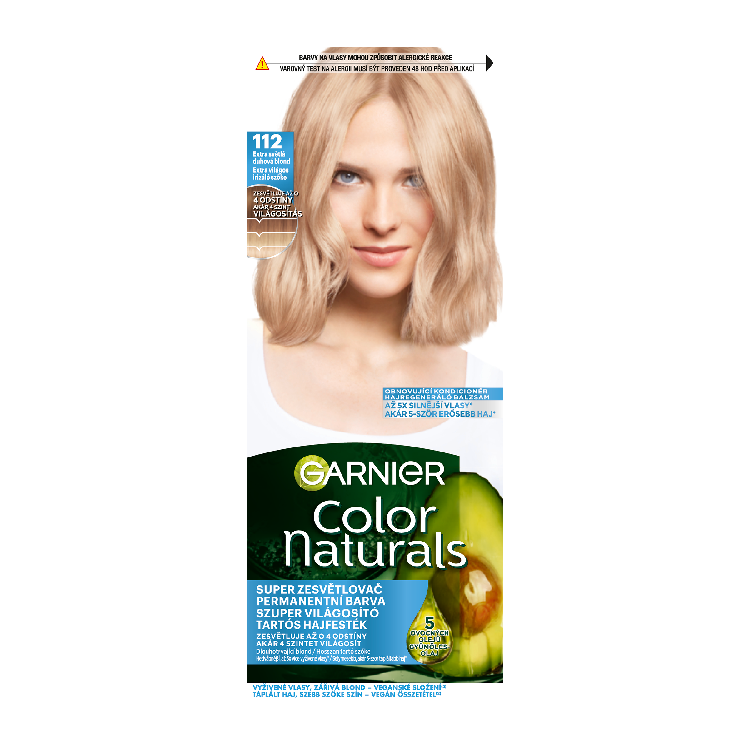 Barva na vlasy Garnier Color Naturals je vyživující permanentní barvou od Garnier. Díky složení vyživující péče obohacené o 5 olejů – olivy, avokádo, karité, kokos a argan budou vaše vlase lesklejší a hebčí. Péče intenzivně vyživuje vlasy, uhlazuje povrch vlasového vlákna a vytváří ochrannou vrstvu. Technologie „Color boost“ pro sytější a déle trvající barvu proniká do vlasových vláken a vyplňuje je sytou bohatou barvou. Díky závěrečné péči s 5 oleji je barva bohatá a dlouhotrvající. Výsledkem jsou 5x silnější vlasy, 100% krytí šedin a ochrana vlasů před vysušováním až na 8 týdnů, (*Instrumentální test). Zesvětlující barvy dokáží přirozeně odbarvit vlasy až o 4 odstíny. Studené pigmenty obsažené ve vybraných studených odstínech eliminují nežádoucí oranžové a žluté odlesky.