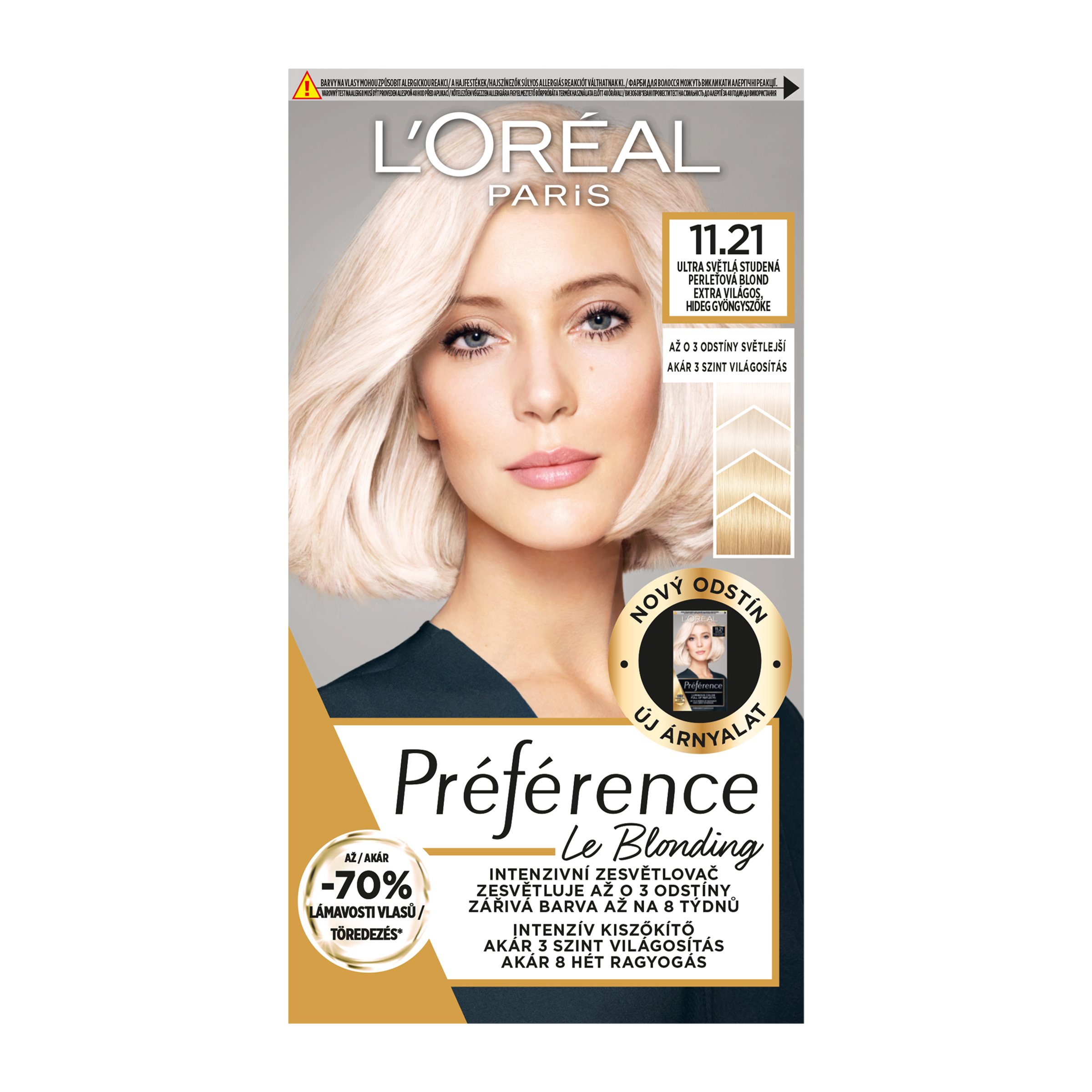 Zesvětlovač Préférence zesvětlí vaše vlasy až o 3 odstíny díky unikátní zesvětlující síle zesvětlovače Préférence Intensive. Závěrečná posilující péče vyživuje vlasová vlákna a snižuje lámavost až o 70 %.* *Instrumentální test