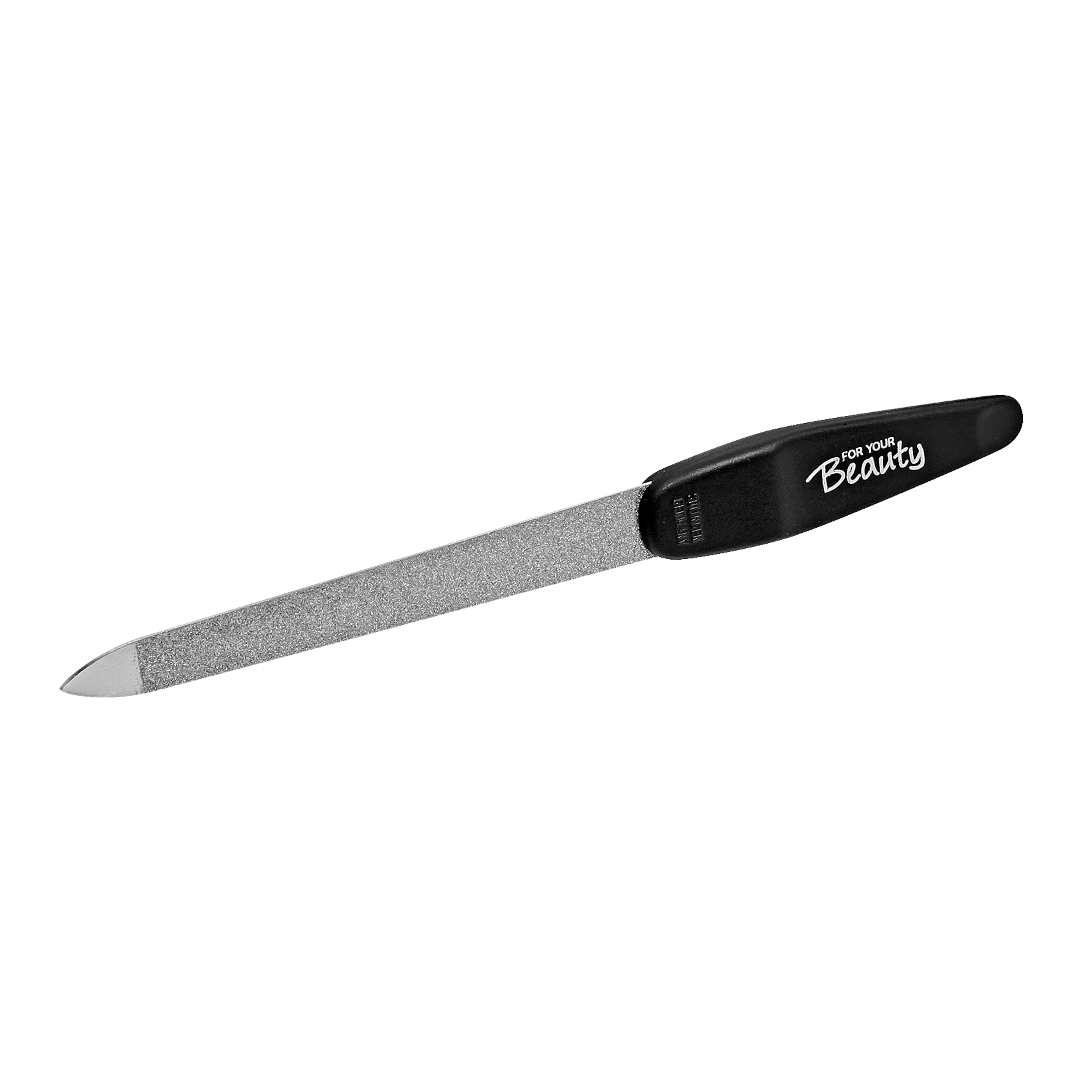 Pilníkem se safírovými zrny docílíte upravených nehtů. Hrubší stranou pilníku nehty nejprve předpilujte a upravte do požadovaného tvaru. Jemná strana pilníku pak slouží pro jejich konečnou úpravu. Nezapomeňte pilovat nehty pouze jedním směrem, abyste předešli roztřepení.