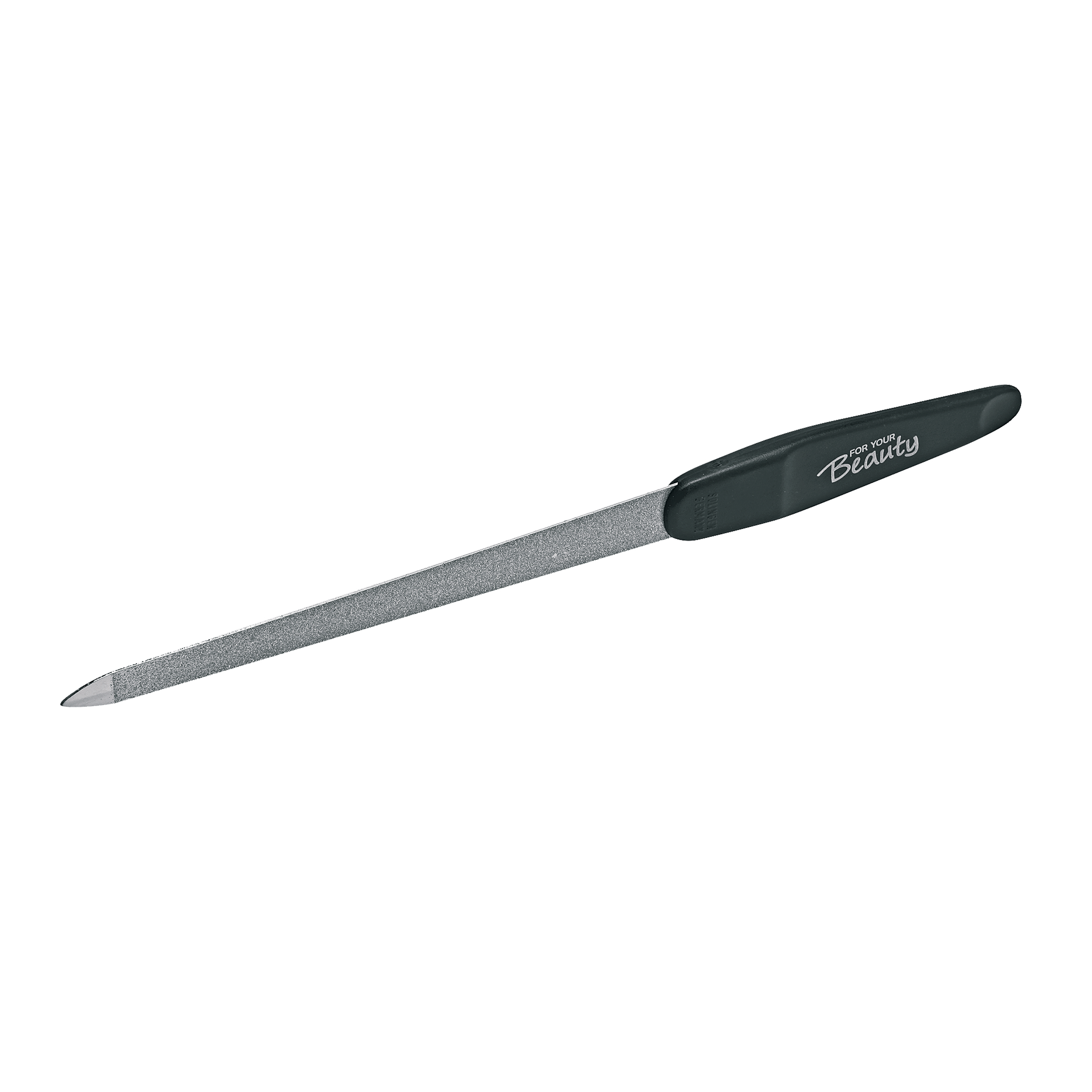 Pilníkem se safírovými zrny docílíte upravených nehtů. Hrubší stranou pilníku nehty nejprve předpilujte a upravte do požadovaného tvaru. Jemná strana pilníku pak slouží pro jejich konečnou úpravu. Nezapomeňte pilovat nehty pouze jedním směrem, abyste předešli roztřepení.