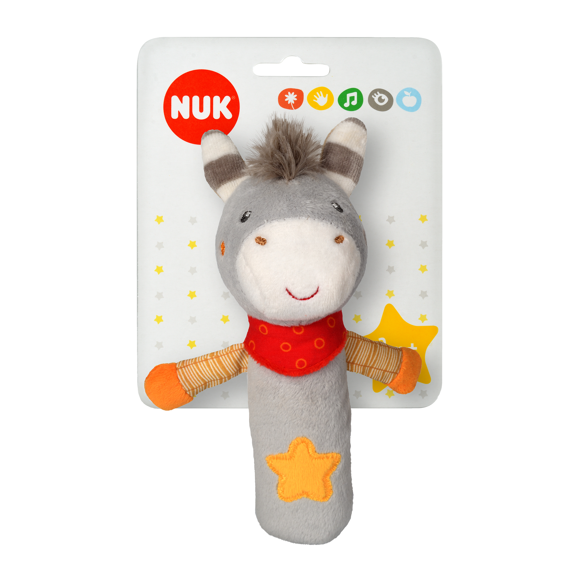 Kdo si hraje, nezlobí. To platí již od útlého věku. Aby se vaši malí raubíři dokázali zabavit i bez vaší pomoci, jsou naše hračky vyrobeny z příjemných materiálů, stimulují smysly a nepřestávají bavit. Všichni si jistě při vzpomínce na naše dětství vybavíme nějakou svou oblíbenou hračku. Dopřejte i vašim nejmenším kamaráda, který jim bude doprovodem při jejich prvních krůčcích životem. Legrací a zábavou na farmě provede děti veselá Kravička a Oslík z nové kolekce Happy Farm od NUK v krásných a pestrých barvách. Veselá Kravička je pískací hračka, která padne do každé malé dětské ručky. Hravé barevné provedení Kravičky zaujme dětská očka a díky pískacím zvukům, které hračka vydává, stimuluje i dětský sluch. Tato hračka je vyrobena z příjemných materiálů, stimuluje smysly a nepřestávají bavit. Podporuje vývoj hmatu. Vhodná jak na držení, tak hraní. Roztomilé pískátko Kravička se tak jistě stane nerozlučným kamarádem Vašeho děťátka. Vhodné pro děti od 3 měsíců.