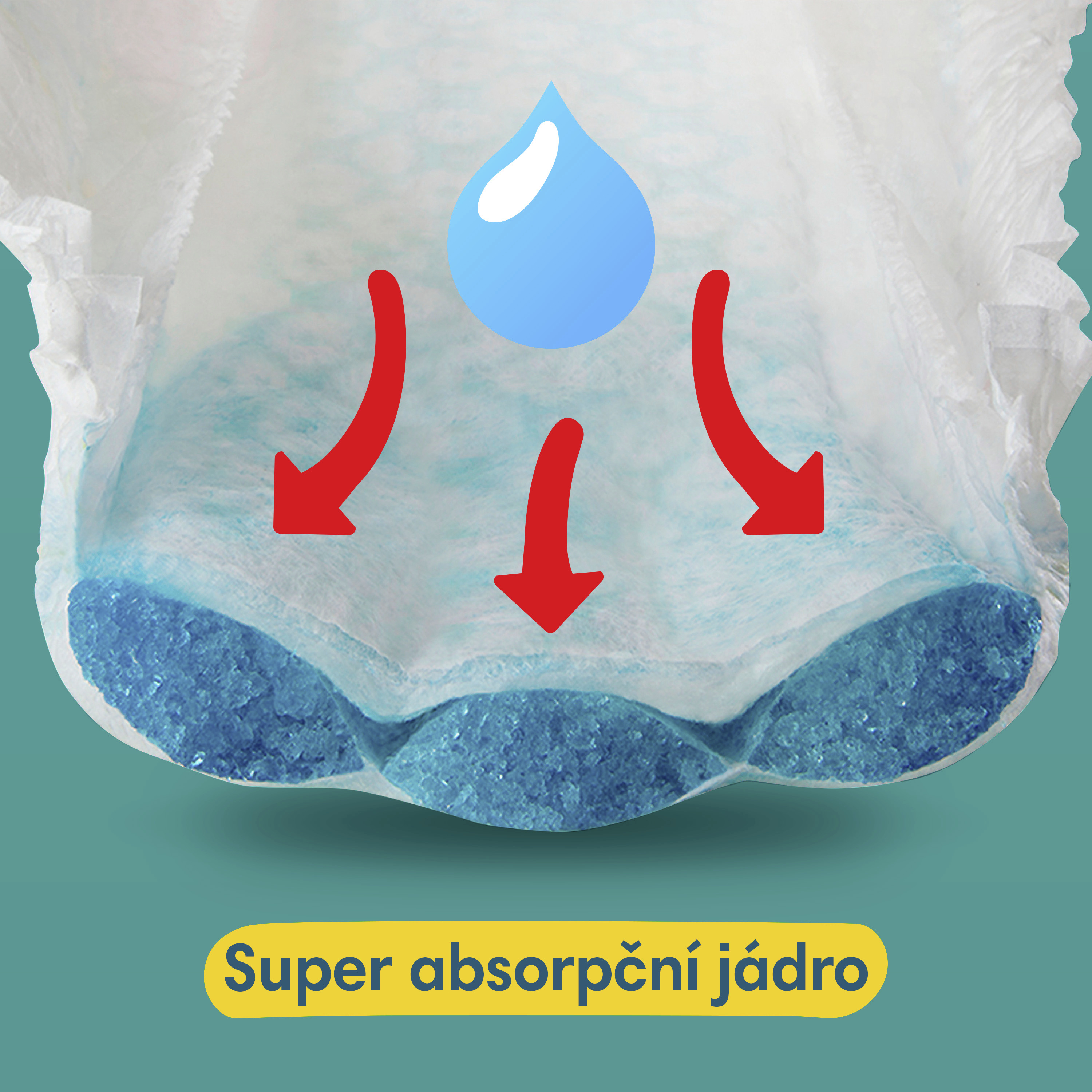- 2× širší* hebké manžetky pomáhají předcházet protečení kolem nožiček (*v porovnání s předchozími plenkami)