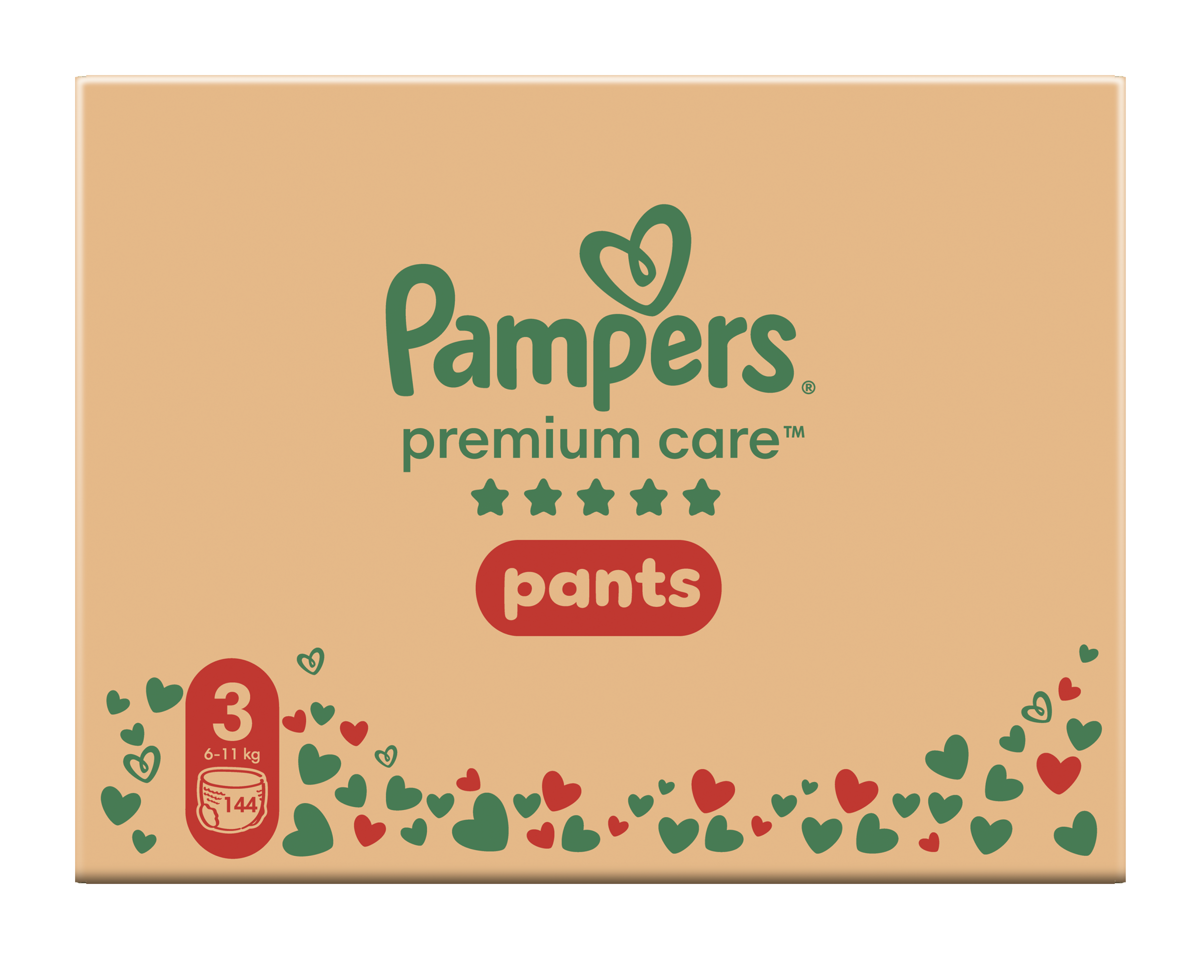 Jakmile začne být vaše děťátko aktivnější, budete potřebovat takovou plenku, která mu pohodlně padne a dokáže je spolehlivě chránit při každém pohybu. Dopřejte svému děťátku nejlepší pohodlí a ochranu před protečením od Pampers s plenkovými kalhotkami Pampers Premium Care Pants: jejich 2× širší* hebké manžetky chrání před zarudnutím a protečení, jejich ultra hebký pružný pas 360° FIT se přizpůsobuje pohybům vašeho děťátka při objevování světa a jejich jedinečná kapsa Stop & Protect pomáhá zabránit protečení vzadu. Plenkové kalhotky Pampers Premium Care se stejně jako všechny plenkové kalhotky od Pampers snadno přebalují, i když je vaše děťátko neposedné: oblékají se jedním tahem a svlékají se roztrhnutím na bocích. Potom je stačí srolovat a zajistit páskem pro snadnou likvidaci. Stejně jako pro vás je i pro Pampers bezpečnost vašeho děťátka prioritou: Plenkové kalhotky Pampers Premium Care Pants jsou dermatologicky testované a schválené dermatology z organizace Skin Health Alliance. Chcete se o složení výrobků Pampers dozvědět víc? Navštivte pampers.cz. *v porovnání s předchozím modelem.