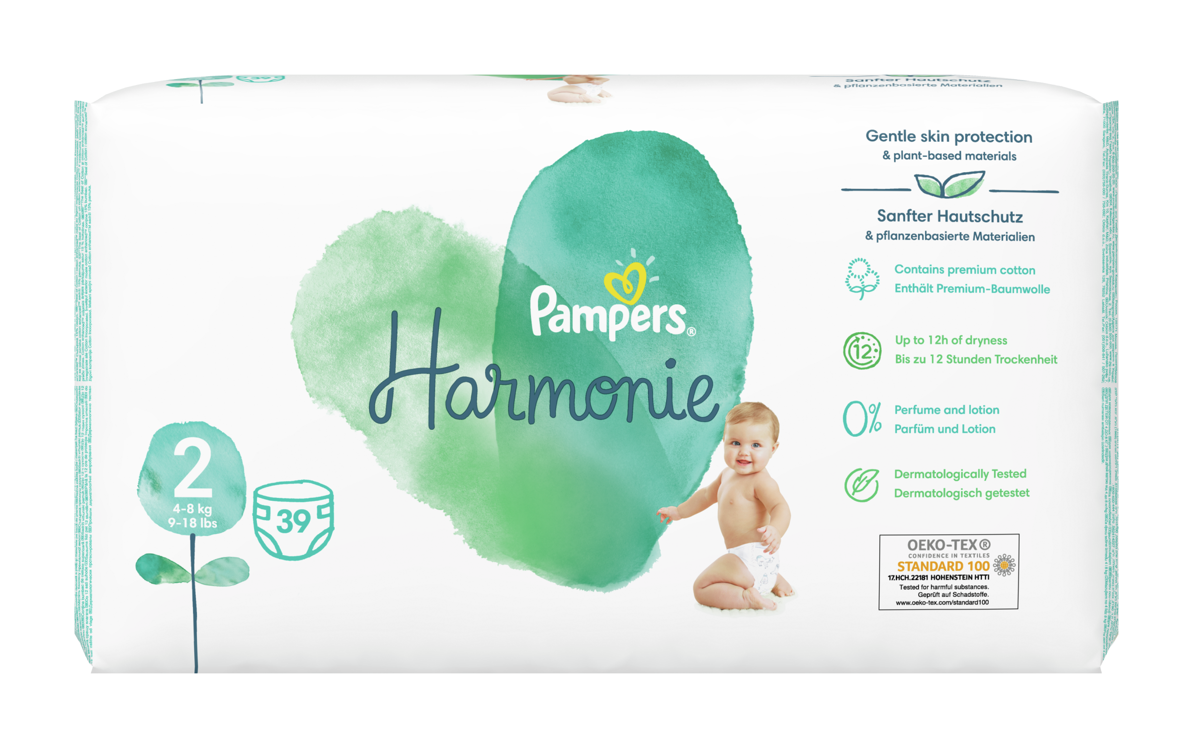 Jemná ochrana pokožky. Se složkami rostlinného původu. Plenky Pampers Harmonie jsou vyrobené z prvotřídní bavlny, hebkých rostlinných vláken a jiných pečlivě vybíraných materiálů, jsou dermatologicky testované a šetrné k pokožce vašeho děťátka. Jsou bez parfemace, neobsahují pleťové mléko ani žádné z 26 látek klasifikovaných směrnicí EU jako alergeny, a zaručují až 12 hodin sucha od Pampers, pro jistotu kvality, na kterou se rodiče mohou spolehnout. Jsou vybavené praktickým indikátorem vlhkosti od Pampers a mají roztomilý potisk: vy i vaše děťátko si je absolutně zamilujete. Plenky Pampers Harmonie se vyrábí z celulózy získávané z udržitelných zdrojů a mají jednu z nejnáročnějších certifikací na světě, Oeko-Tex Standard 100. Chcete se o složení výrobků Pampers dozvědět víc? Navštivte pampers.cz
