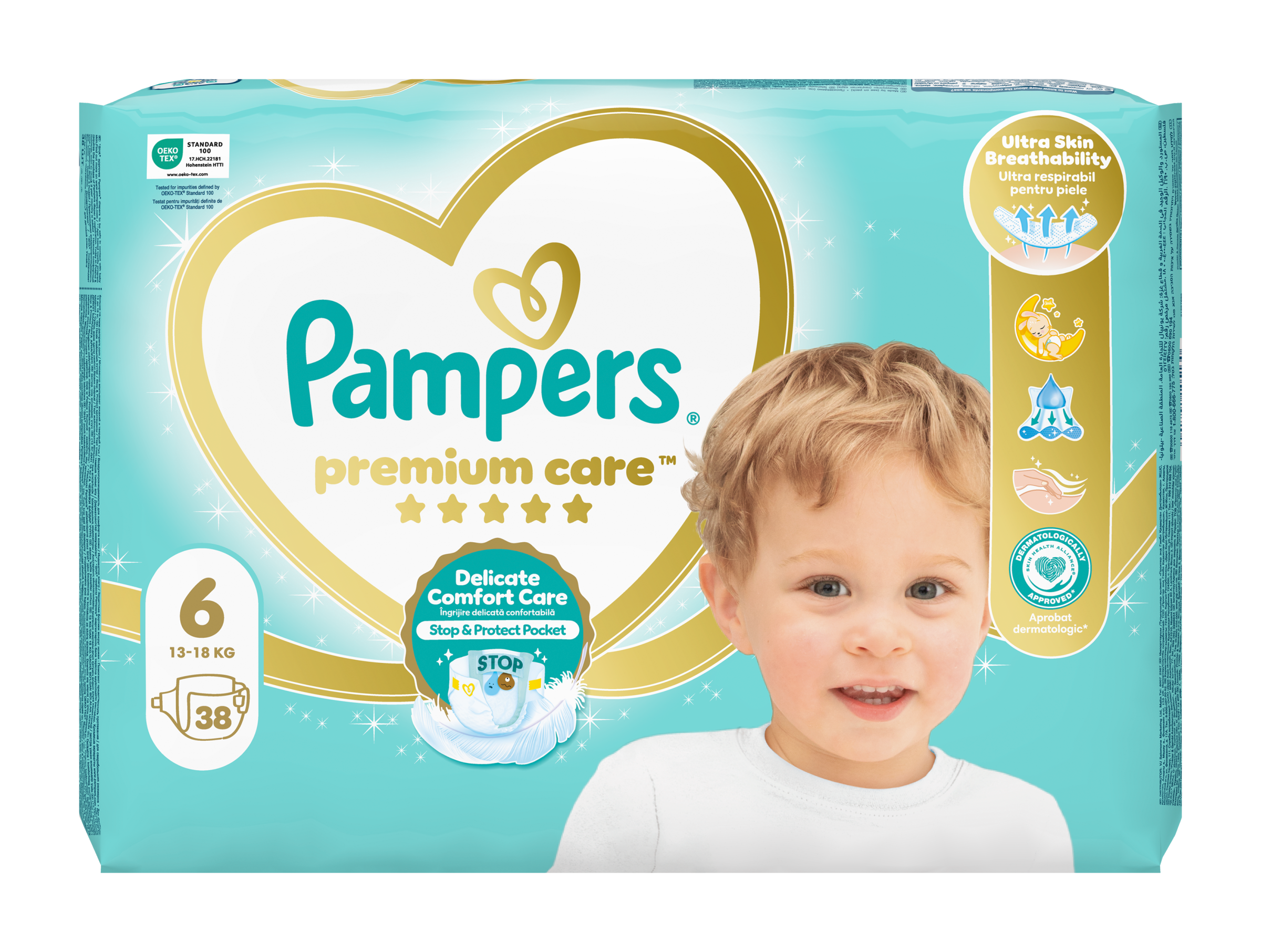 DVOJÍ OCHRANA: pro pokožku a před protečením. Nejlepší pohodlí a ochrana pro citlivou pokožku od Pampers – testováno a schváleno miminky. Plenky č. 1 od Pampers navržené speciálně pro citlivou pokožku novorozenců. A jsou také jedničkou od Pampers v ochraně před protečením. Plenky Pampers Premium Care poskytují nejlepší ochranu od Pampers díky 1) OKAMŽITÉ ABSORPCI – více než 1 000 absorpčních mikropórů okamžitě odvádí vlhkost a nečistoty od pokožky a udržuje ji suchou a chráněnou. 2) JEDINEČNÉ KAPSE STOP & PROTECT, která brání protečení nečistot vzadu. 3) NADÝCHANÝM ULTRA HEBKÝM MATERIÁLŮM, které šetrně zabalí pokožku vašeho děťátka do pohodlí a poskytnou jí ochranu. a 4) jedinečnému pasu COMFORT FIT a s pružným upevňovacím systémem. Pampers Premium Care jsou pro pokožku vašeho děťátka 100% bezpečné: jsou dermatologicky testované a schválené dermatology z organizace Skin Health Alliance. Není divu, že je miminka schvalují.