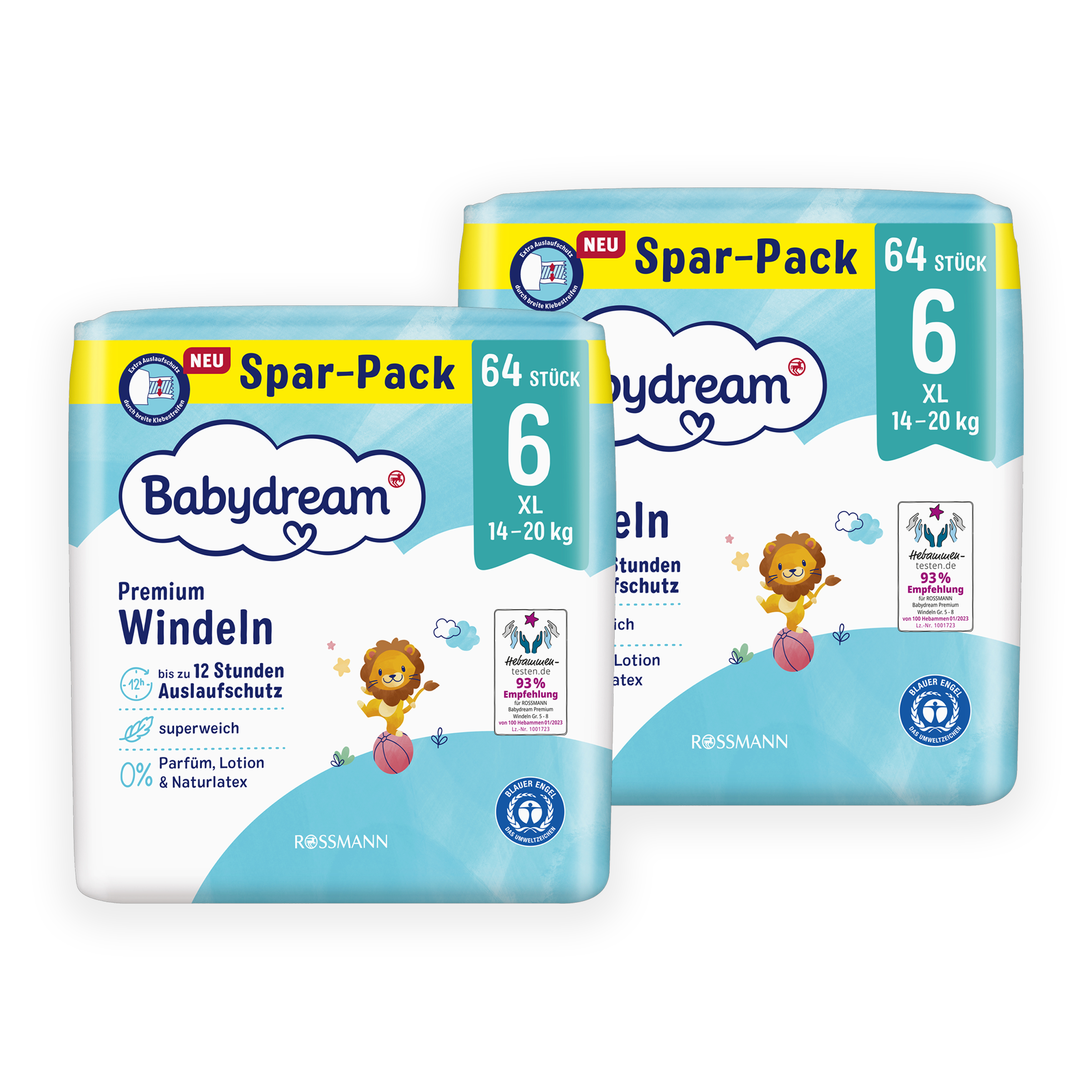 Sametově hebké jednorázové plenky Babydream Premium XL pro děti od 14 do 20 kg poskytují optimální ochranu citlivé pokožky vašeho dítěte. Zůstávají suché až 12 hodin a mimořádně rychle absorbují tekutinu. Praktický indikátor vlhkosti vás upozorní na potřebu výměny plenky změnou barvy – zbarví se modře, když je třeba plenku vyměnit.