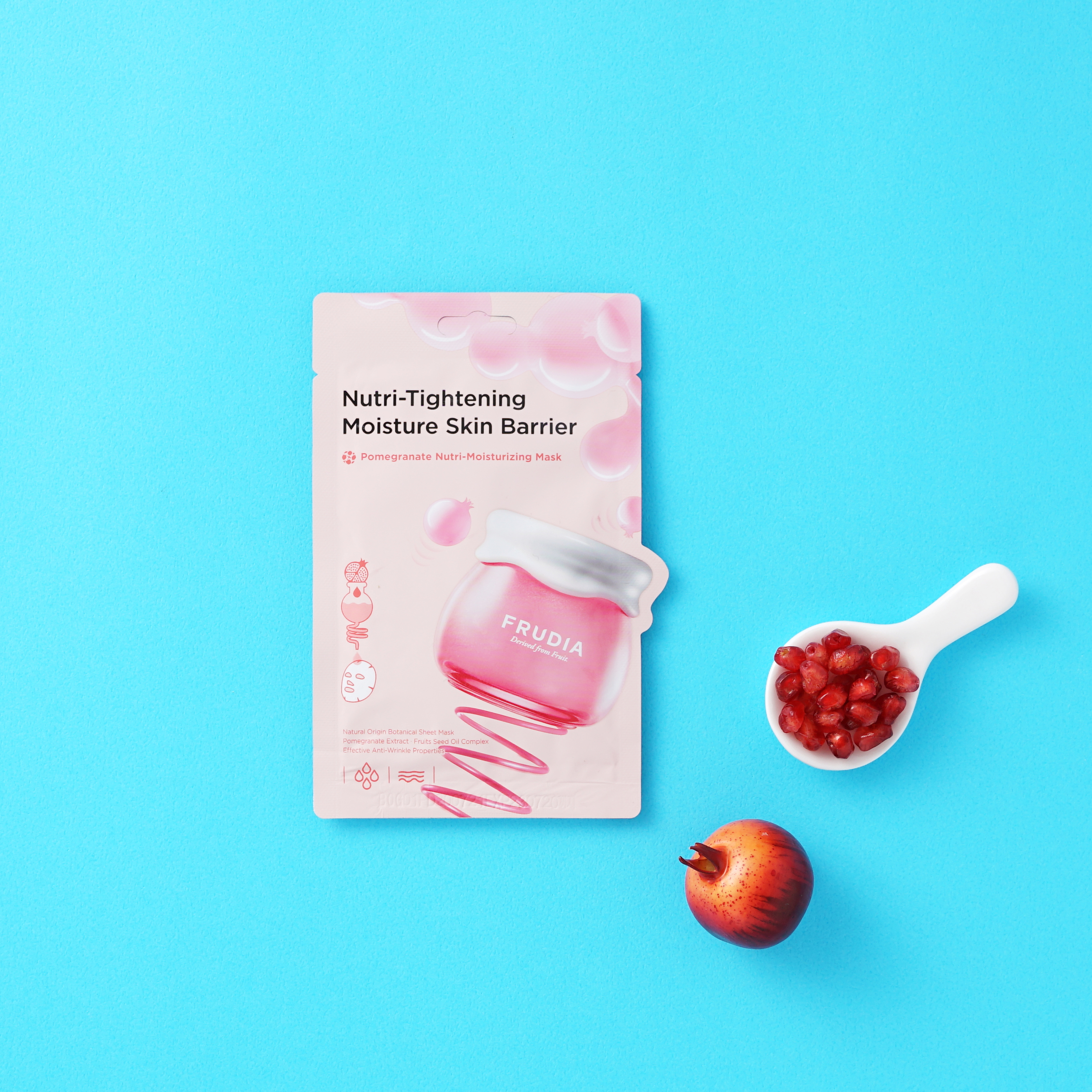 Plátýnková maska pro výživu a hydrataci pleti. Obsahuje výtažek z granátového jablka, které je bohaté na polyfenoly. Díky tomu poskytuje okamžitou a dlouhodobou hydrataci suché a unavené pleti.