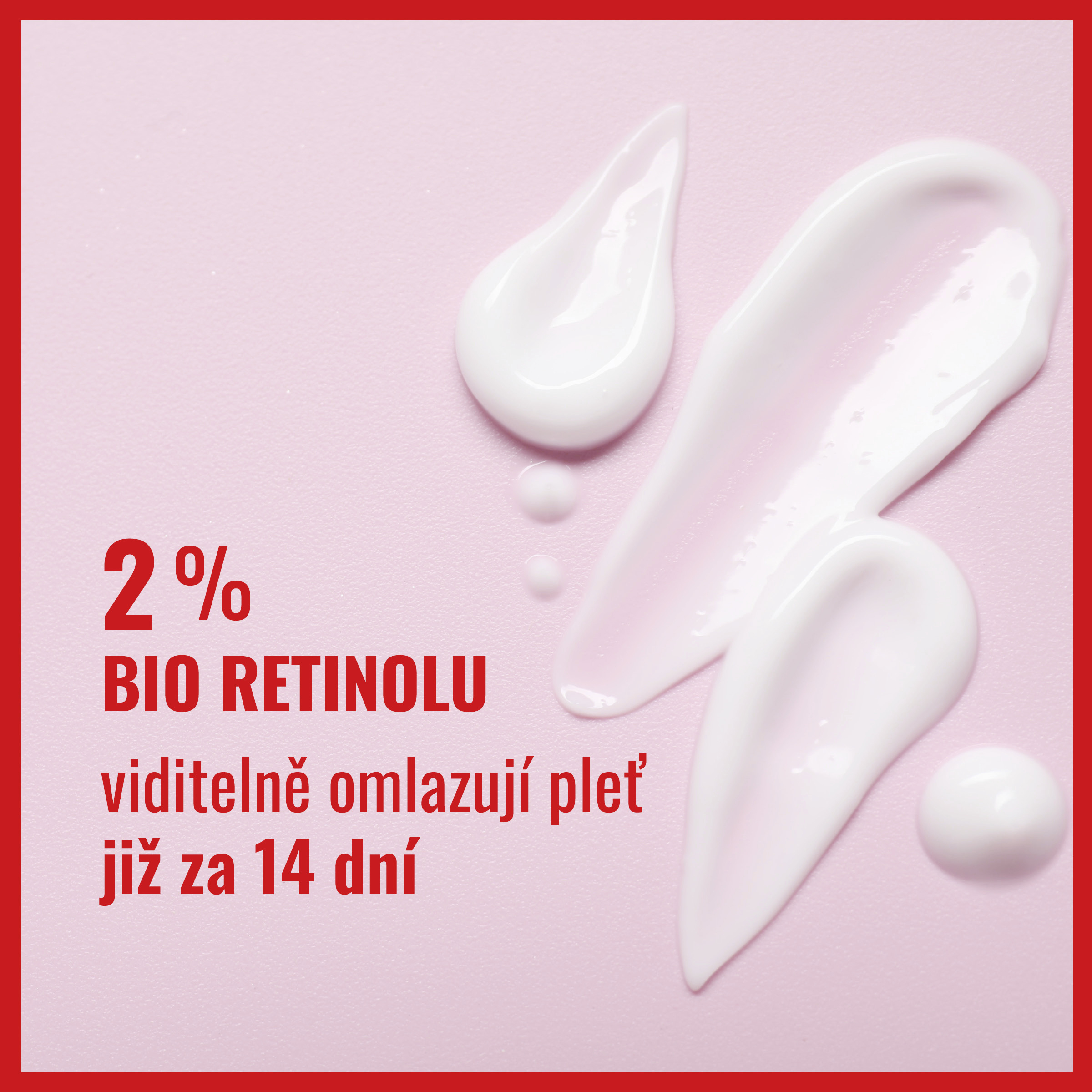 Intenzivní protivrásková péče s 2 % Bio Retinolu viditelně omlazuje a obnovuje strukturu pleti. Pleťová maska s kyselinou hyaluronovou aktivuje tvorbu kolagenu, vyhlazuje jemné linky a zabraňuje vzniku nových. Hloubkově hydratuje, vyživuje a navrací pleti ztracenou pevnost a elasticitu. Obnovuje rovnováhu v pokožce, posiluje její ochranou bariéru a účinně bojuje proti pigmentovým skvrnám.