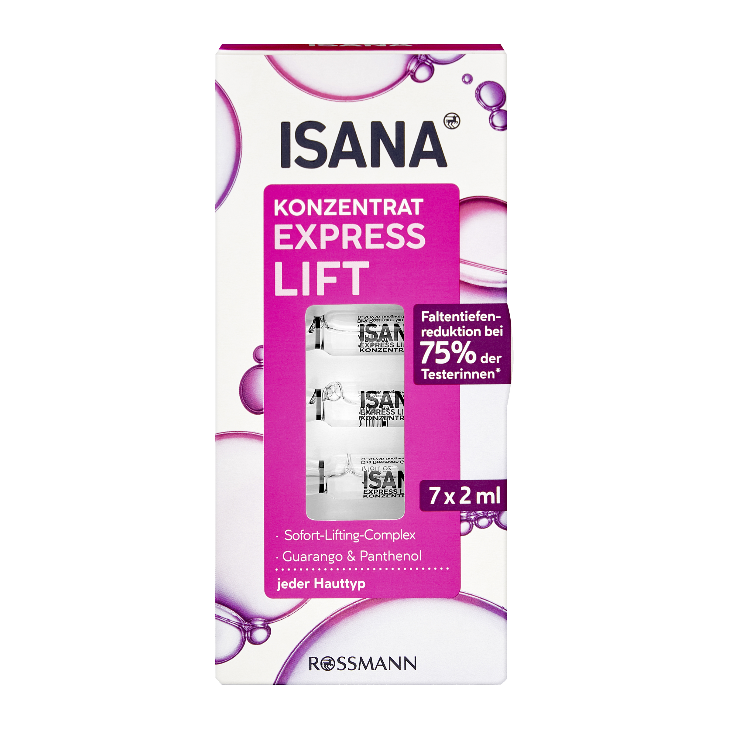 ISANA Pleťové ampule Express Lift Konzentrat je vyhlazující a hydratační intenzivní péče pro všechny typy pleti.