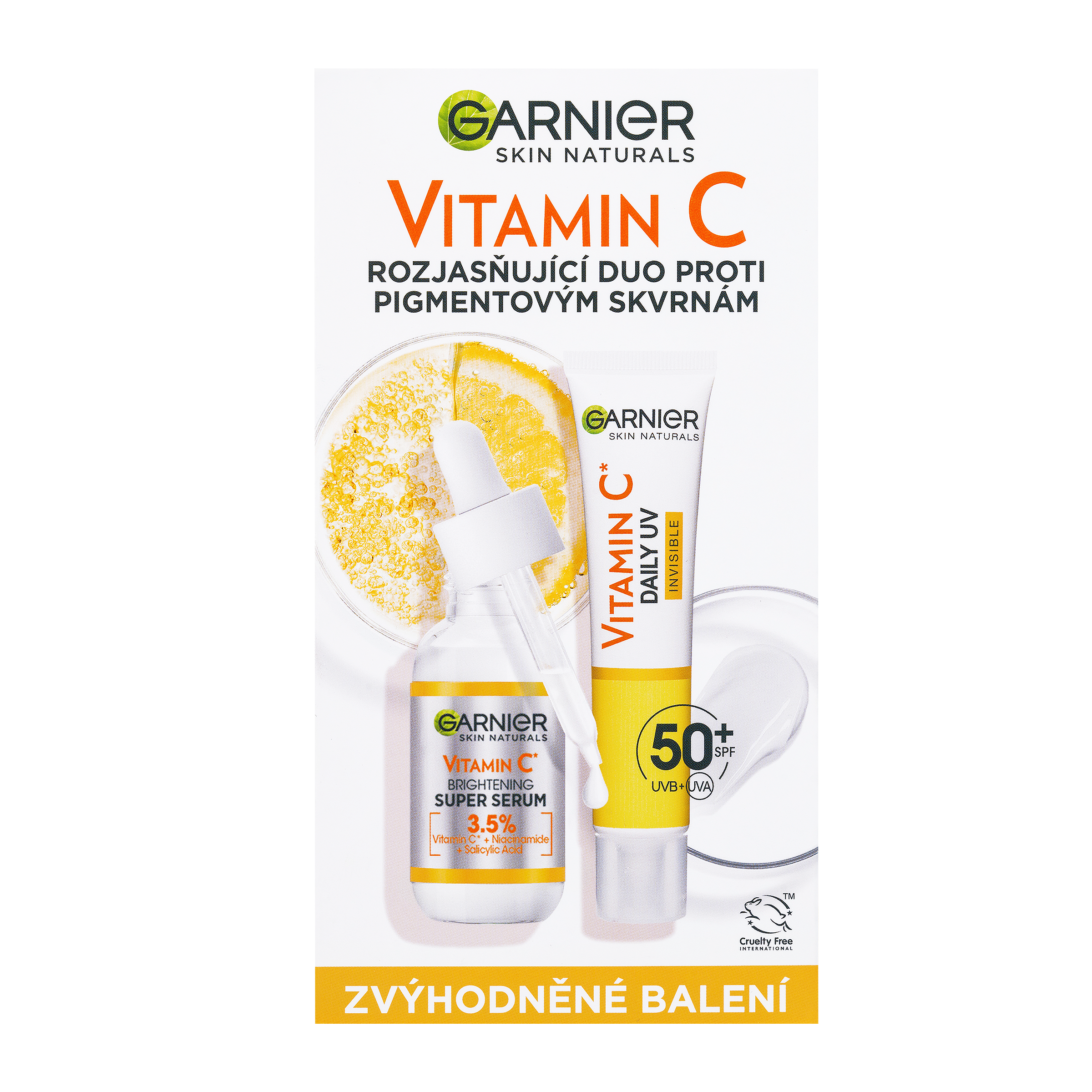 Garnier Skin Naturals pleťové sérum Vitamin C s 3,5 % komplexu látek s intenzivním efektem na pokožku – vitamin C, niacinamid a kyselina salicylová, pro snížení viditelnosti pigmentových skvrn již za 6 dní a podporu tvorby kolagenu pro hladší pleť. Výtažek z citronu má své rozjasňující a antioxidační účinky na pleť. Za 3 dny pleť se zdá více sjednocená a vypadá hladší. Za 6 dní jsou pigmentové skvrny méně viditelné. Dopřejte své pleti intenzivní péči od značky Garnier Skin Naturals.