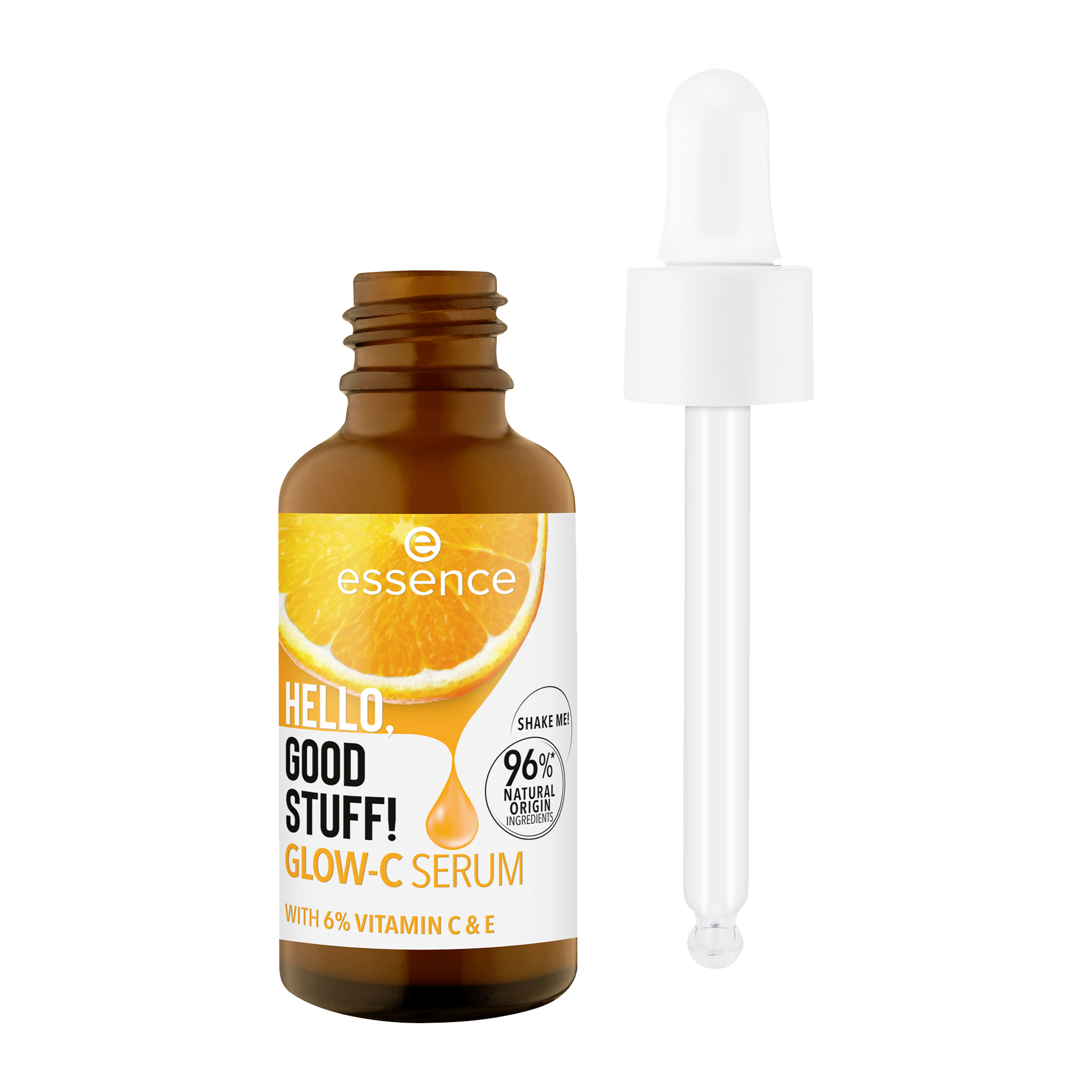 Denní dávka štěstí pro vaši pleť je tady! Essence Hello, Godd Stuff! Gow-C sérum má lehkou mléčnou texturu, rychle se vstřebává a zanechává pleť zářivou a svěží. Obsahuje 6% askorbylfosfát sodný – jemný derivát vitamínu C, který je ideální pro citlivou pleť náchylnou k akné – a také vitamín E a trocha pomerančového extraktu. Pomáhá chránit pleť před volnými radikály pro sjednocenější vzhled. Je vhodný pro většinu typů pleti, taková malá dávka péče o pleť, na kterou jste čekali!