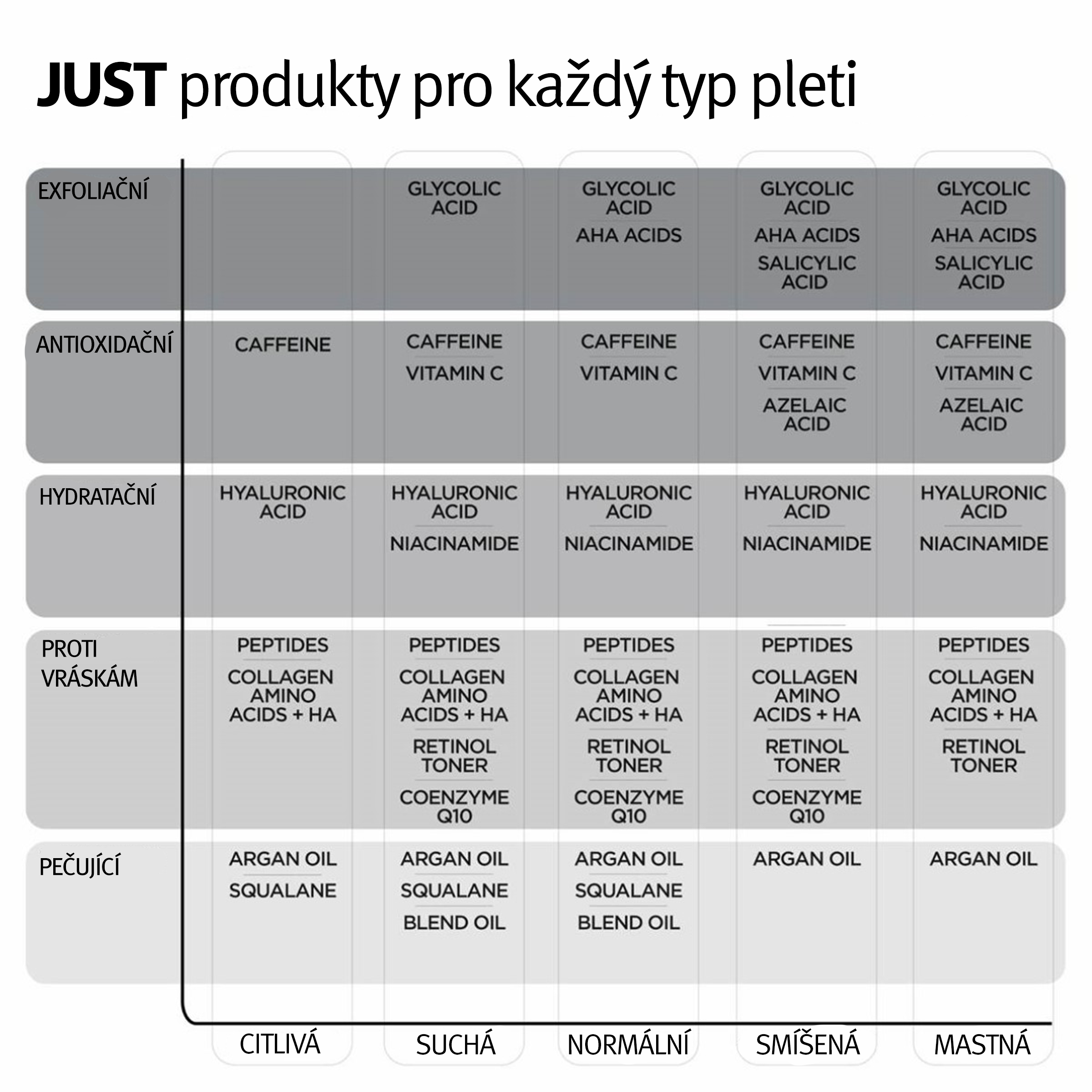 Přípravek se zaměřuje na hrubou strukturu pleti, suchost a skvrny. Vhodný pro všechny typy pleti.