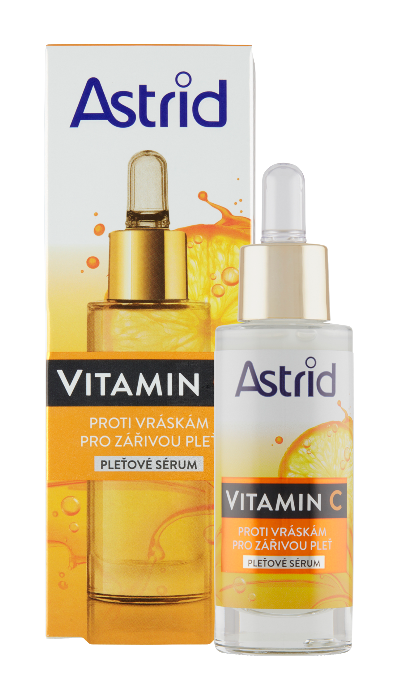 Pleťové sérum Astrid Vitamin C, bohaté na vitamin C, který je známý svými antioxidačními účinky na pleť, posiluje produkci kolagenu a zvyšuje rovnoměrný tón a jas pleti.