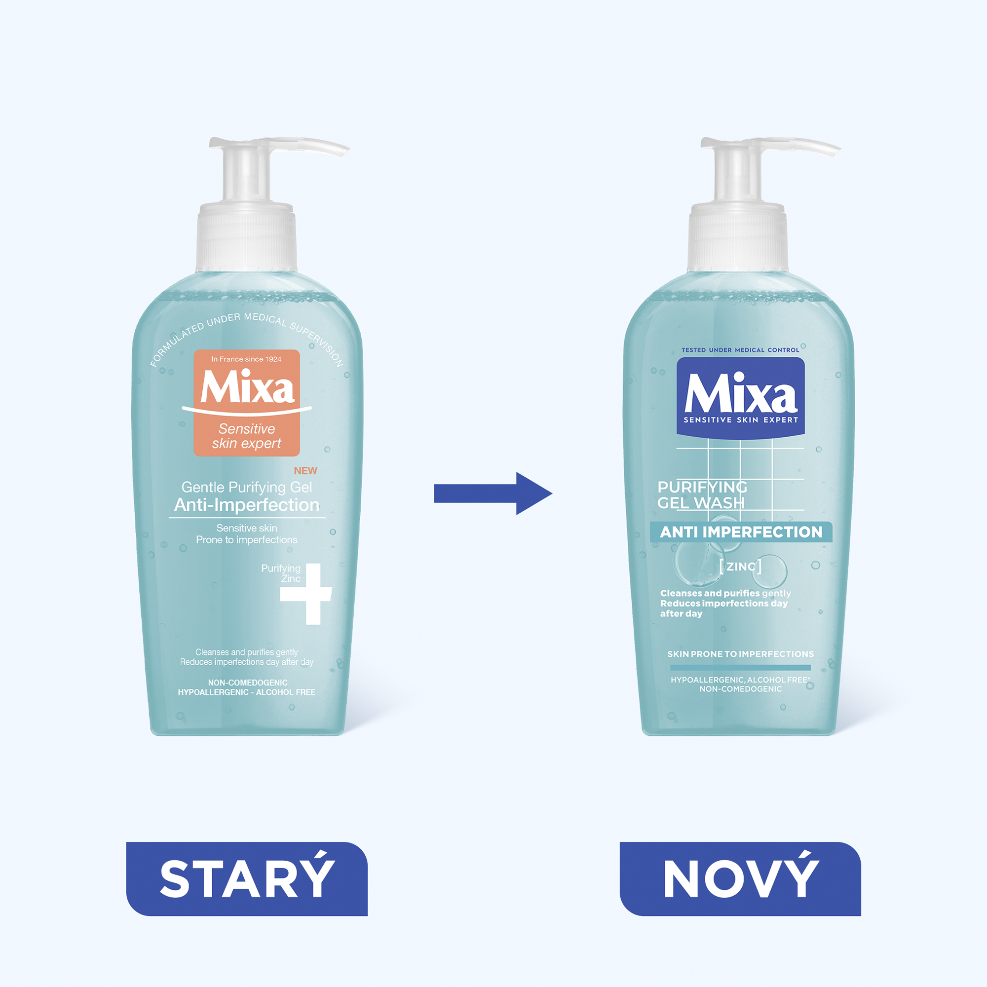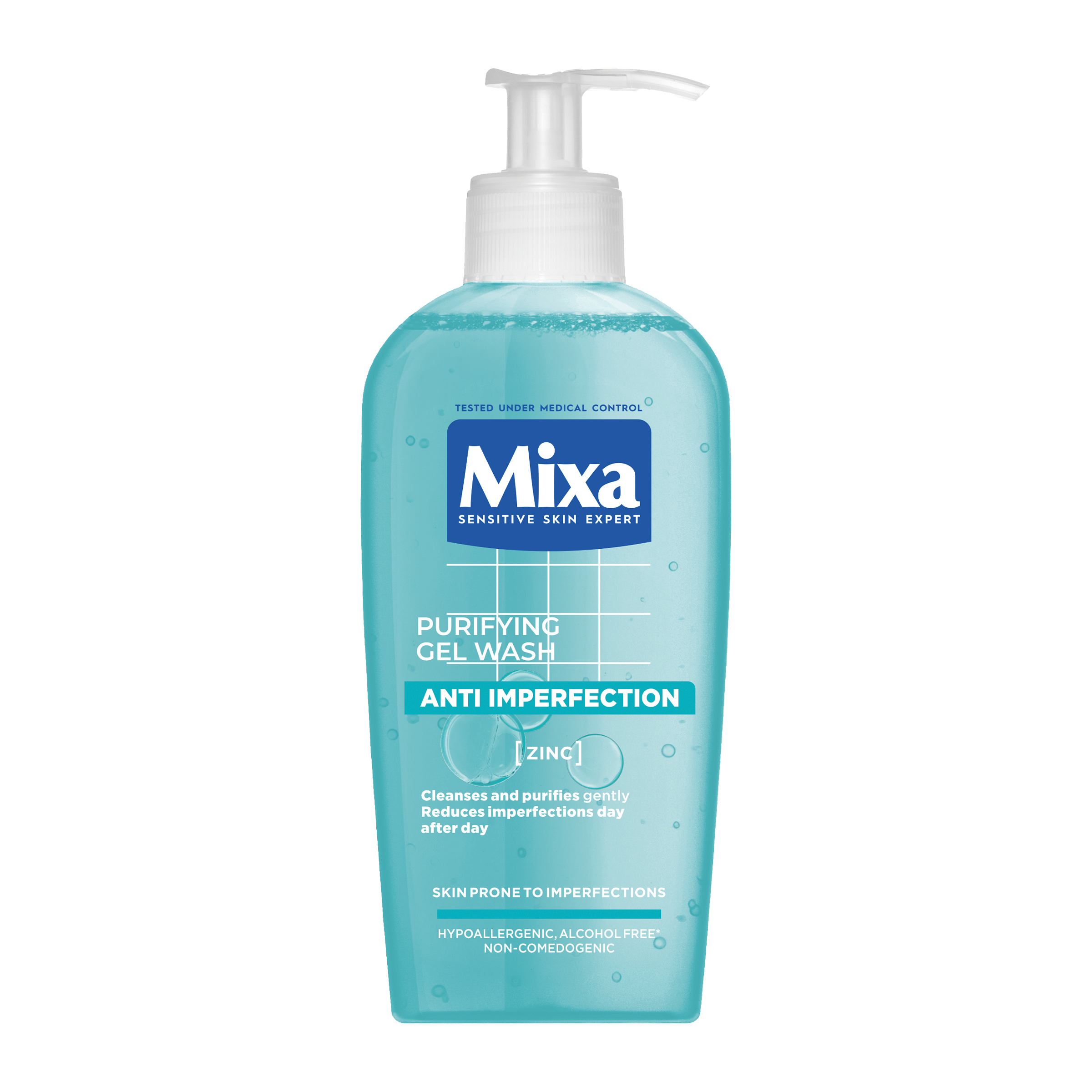 Čisticí pleťový gel Mixa je ideální pro mastnou a citlivou pleť se sklonem k nedokonalostem. Jemně odstraňuje nečistoty a přebytek kožního mazu. Obohacený o čisticí Zinc PCA hloubkově čistí póry a redukuje nedokonalosti. Pleť je dokonale vyčištěná, osvěžená a zmatněná.