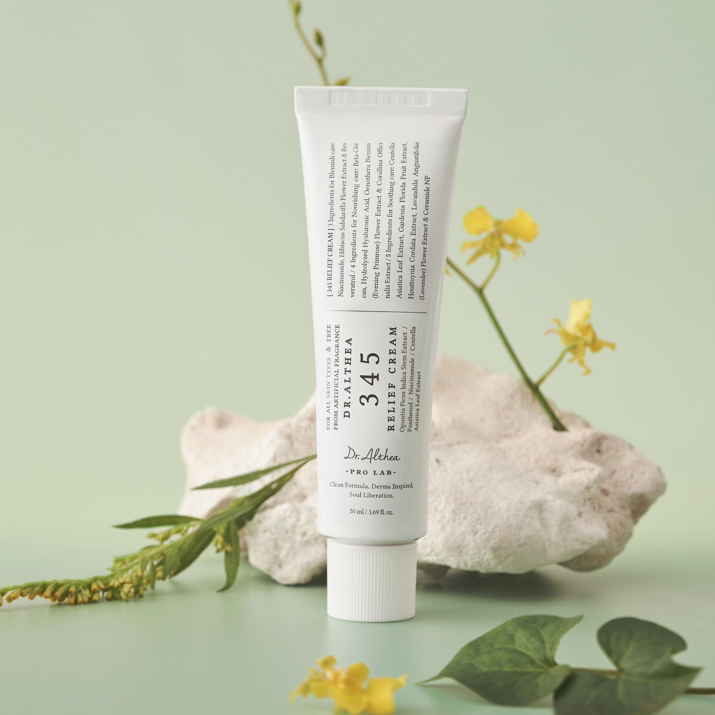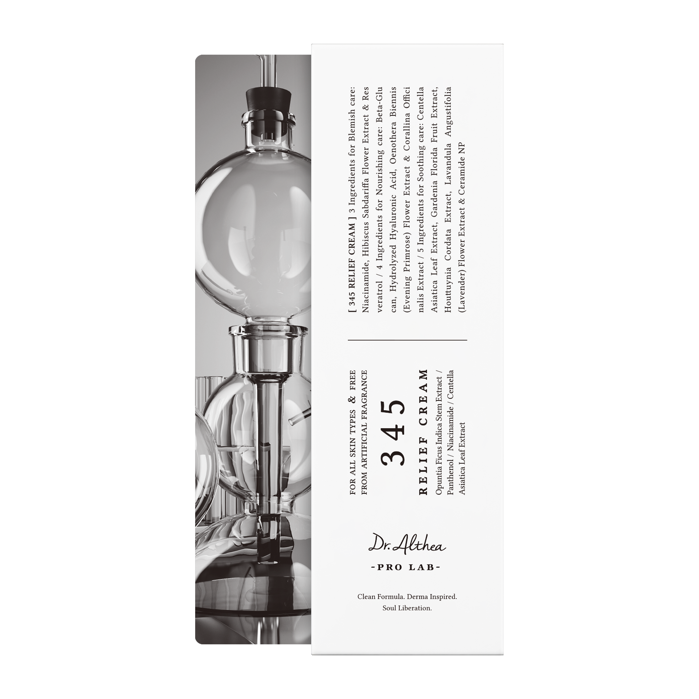 345 Relief Cream je hluboce hydratační a zklidňující pleťový krém, který pomáhá redukovat nedokonalosti, pigmentové skvrny a zarudnutí. Obsahuje niacinamid, resveratrol a výtažek z ibišku súdánského, které působí proti nerovnostem pleti a podporují její regeneraci. Ceramidy, panthenol, pupalka dvouletá a mořské řasy posilují ochrannou bariéru pleti a poskytují intenzivní výživu. Kyselina hyaluronová, beta-glukan, centella asiatica, gardénie jasmínovitá a touleň srdčitá zajišťují hloubkovou hydrataci, zklidnění podráždění a ochranu před vnějšími vlivy. Díky lehké, nemastné textuře je vhodný pro všechny typy pleti, včetně citlivé.