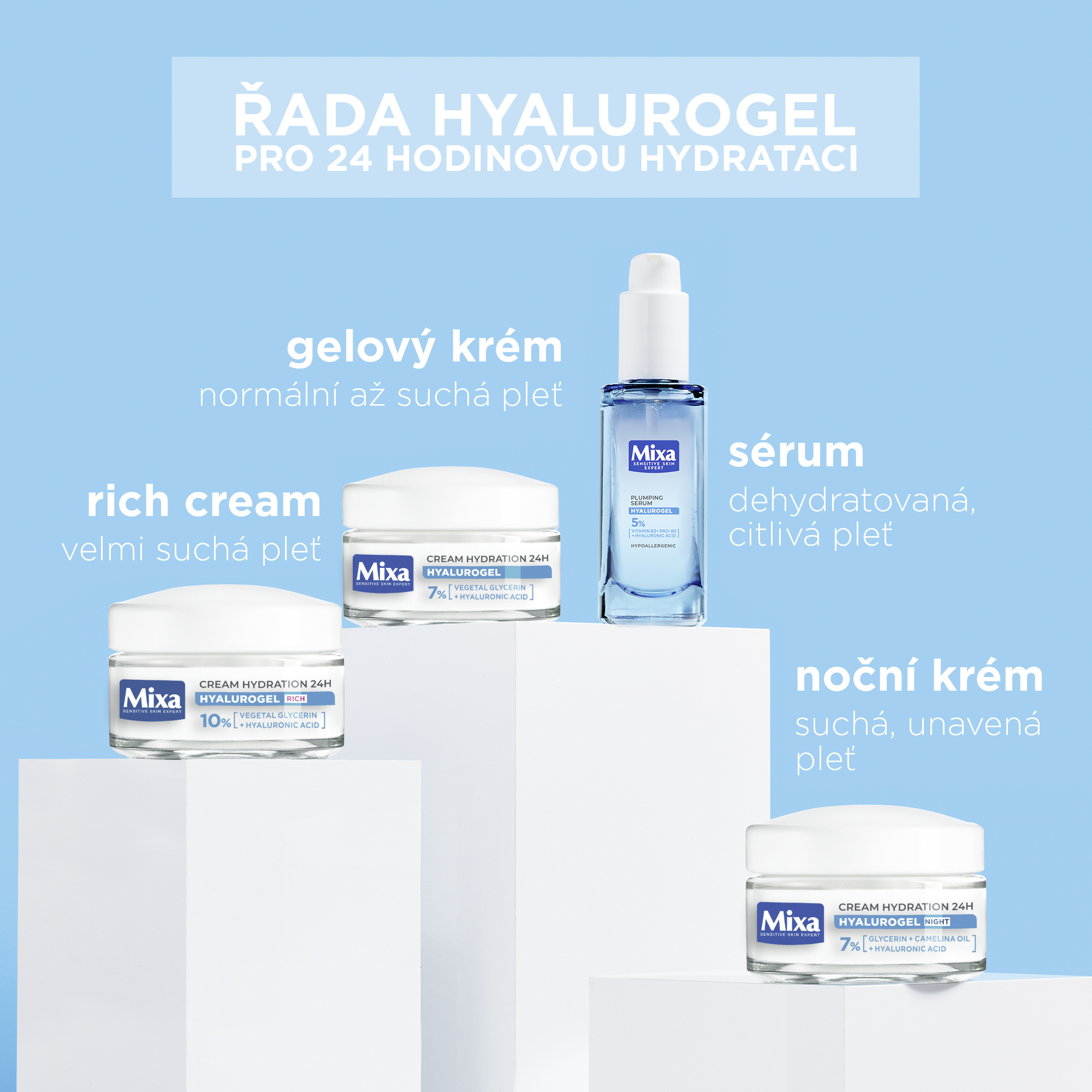 Intenzivní lehká hydratační péče Hyalurogel RICH je obohacena o kyselinu hyaloronovou, která váže 1000x více vody než sama váží. Krém je vhodný pro citlivou pleť se sklonem k vysoušení.