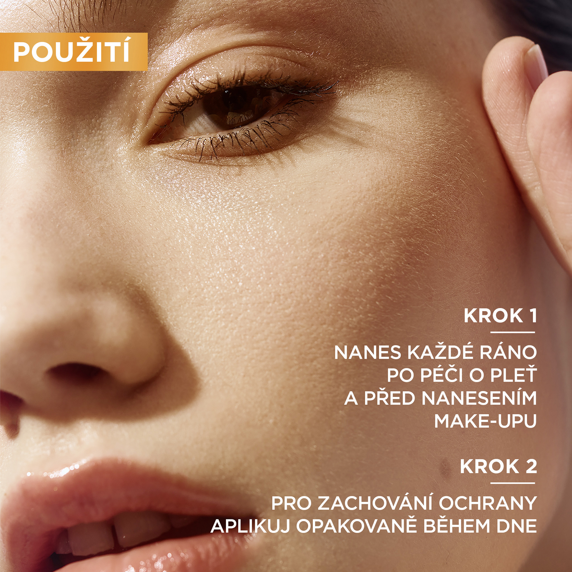 Vyhněte se intenzivnímu polednímu slunci. Chraňte kojence a batolata před přímým slunečním zářením a používejte sluneční ochranu s vysokým slunečním faktorem (SPF vyšší než 25) a ochranný oděv. Dokonce ani opalovací krémy s vysokou úrovní sluneční ochrany nezaručují úplnou ochranu proti UV záření. I přes použití opalovacího krému nezůstávejte na slunci příliš dlouho. Každé spálení sluncem způsobuje trvalé poškození kůže a je třeba se mu vyhnout. Nadměrné opalování představuje vážné zdravotní riziko. Nechte opalovací krém úplně vsáknout. Vyvarujte se kontaktu s textilem - jsou možné trvalé skvrny. Vyhněte se kontaktu s očima.