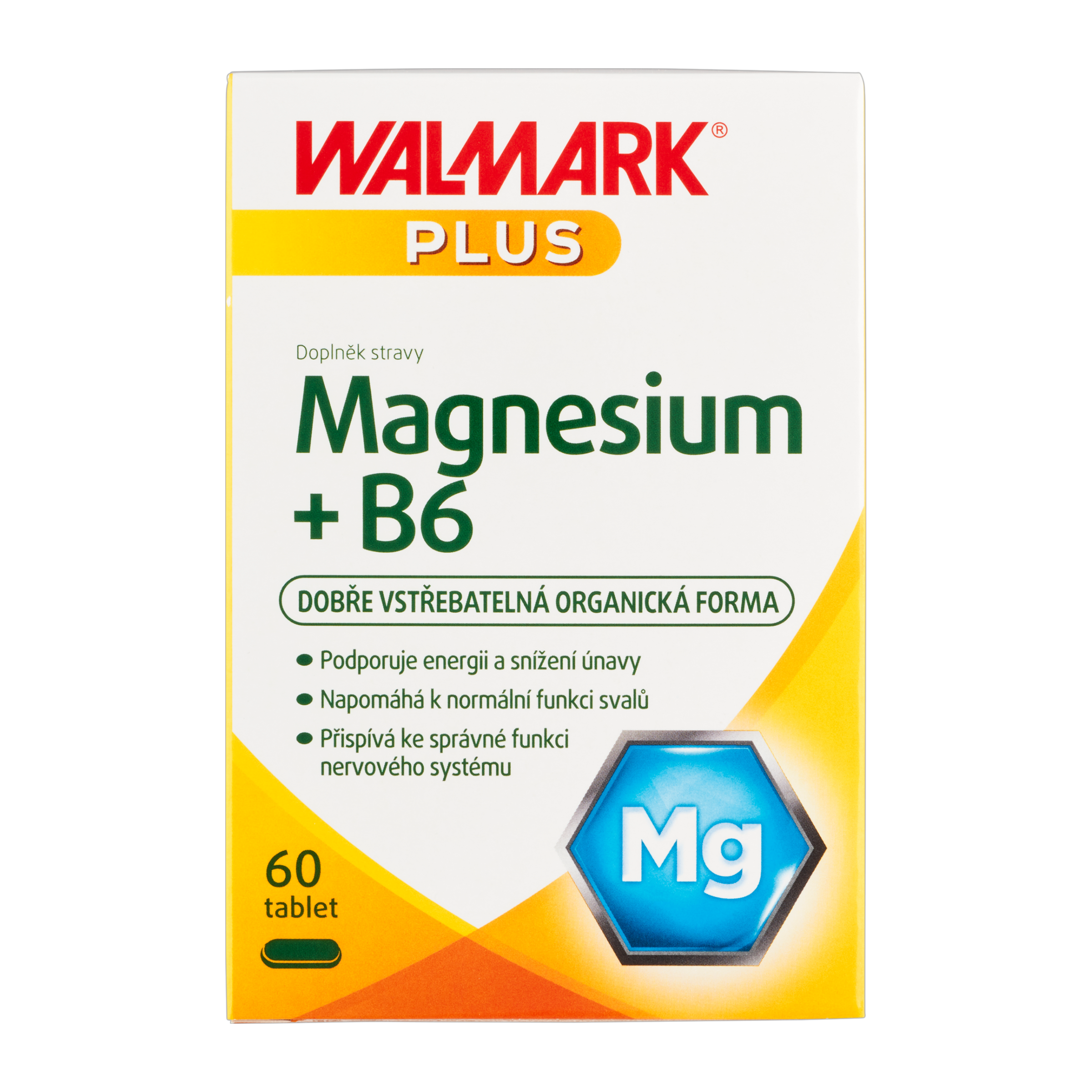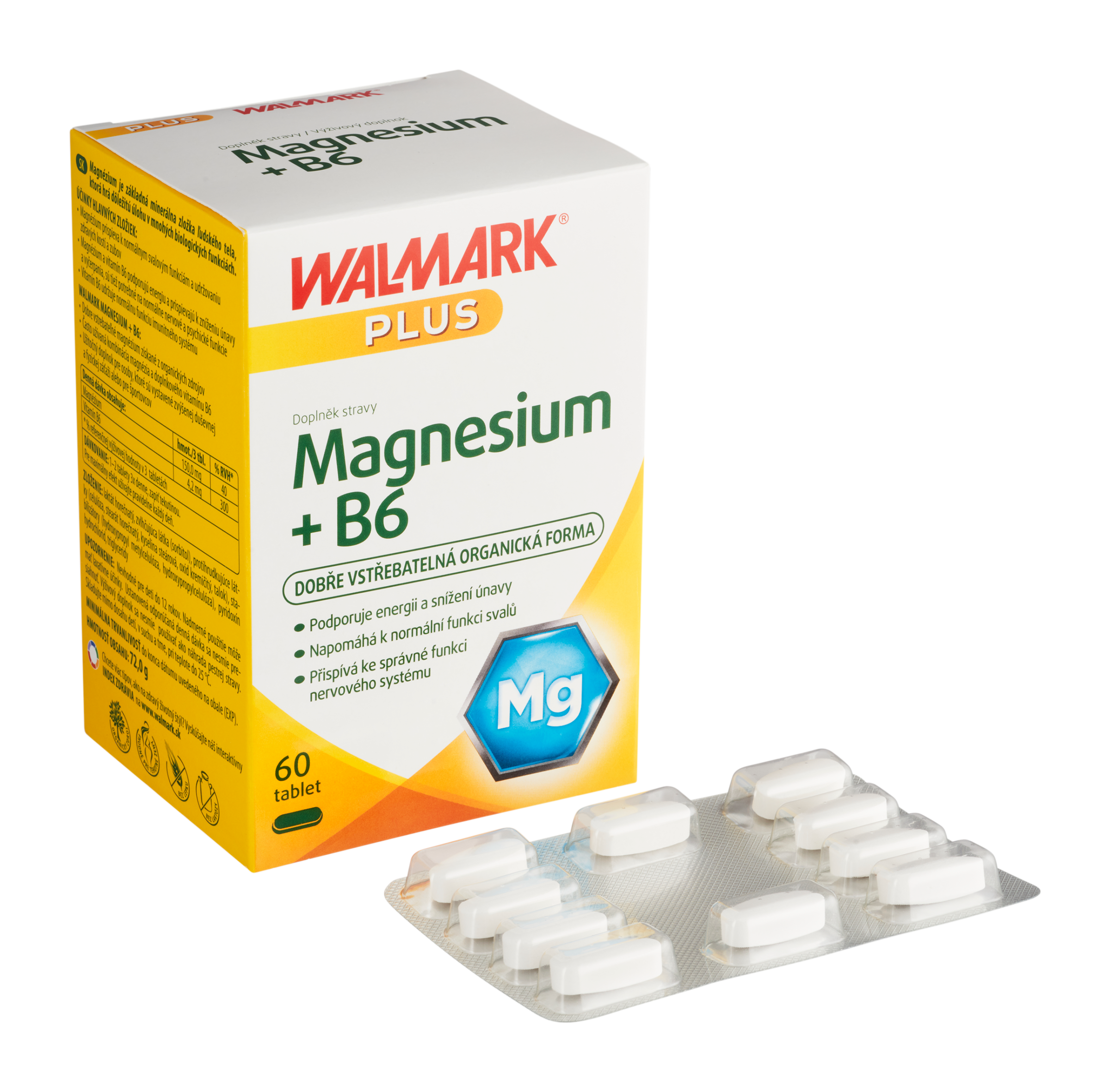 Walmark Magnesium + B6: Dobře vstřebatelné magnesium získané z organických zdrojů. Často užívaná kombinace magnesia a doplňkového vitaminu B6. Užitečný doplněk pro osoby, které jsou vystaveny zvýšené duševní a fyzické zátěži nebo pro sportovce.