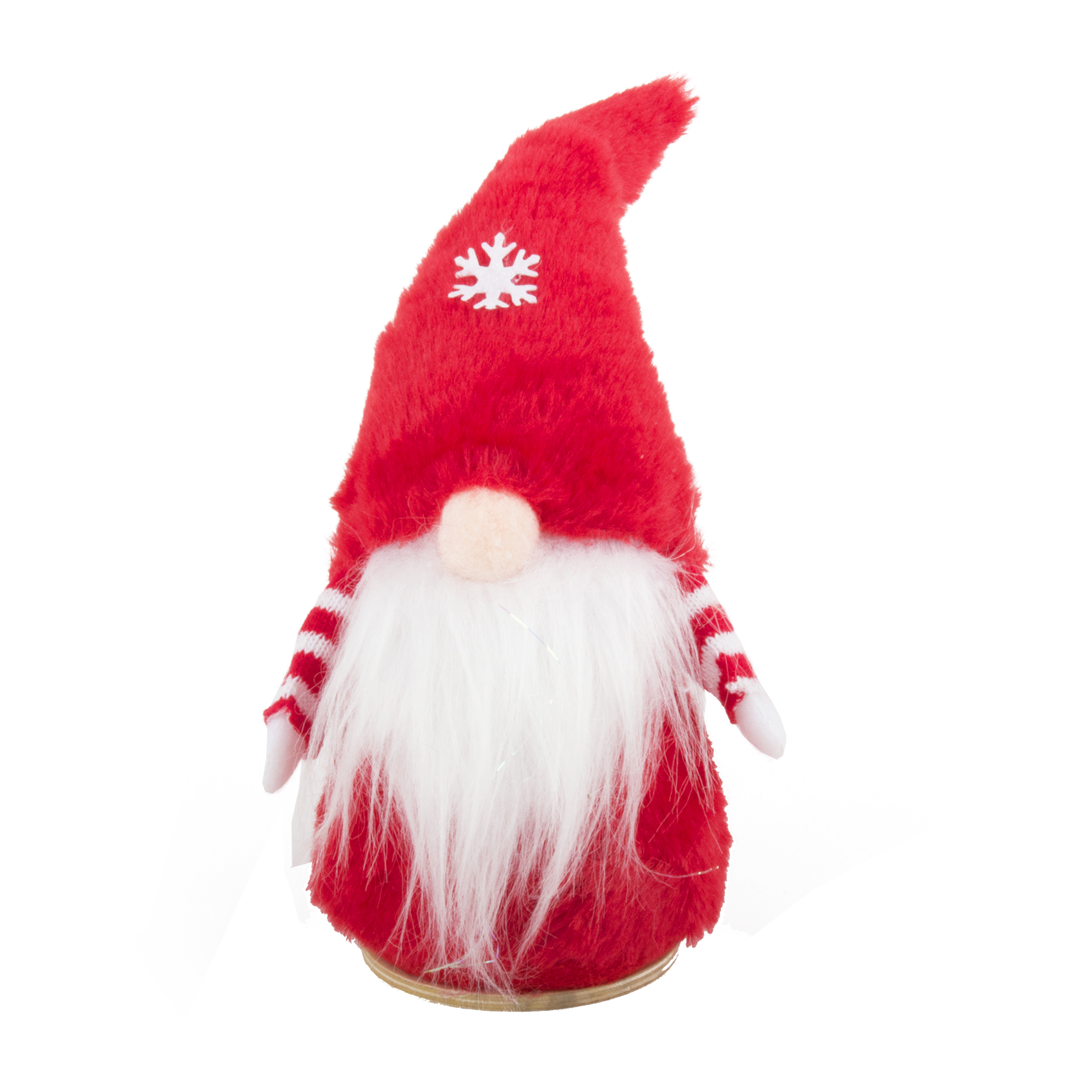 Roztomilá plyšová dekorace v podobě skřítka s červenou čepicí zdobenou sněhovou vločkou, dlouhým bílým plnovousem a pruhovanými rukávy. Výška 21 cm. Ideální jako vánoční ozdoba na poličku, stůl nebo pod stromeček.