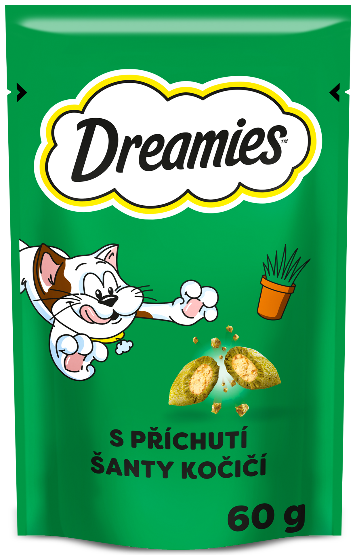 Kočky šílí po neodolatelné chuti kočičích pamlsků DREAMIES. Lahodné a křupavé zvenku, měkké uvnitř – kočky jednoduše nedokáží odolat skvělé chuti DREAMIES. Tak jen do toho, zatřeste sáčkem a sledujte, jak se k vám vaše kočka rozběhne.
