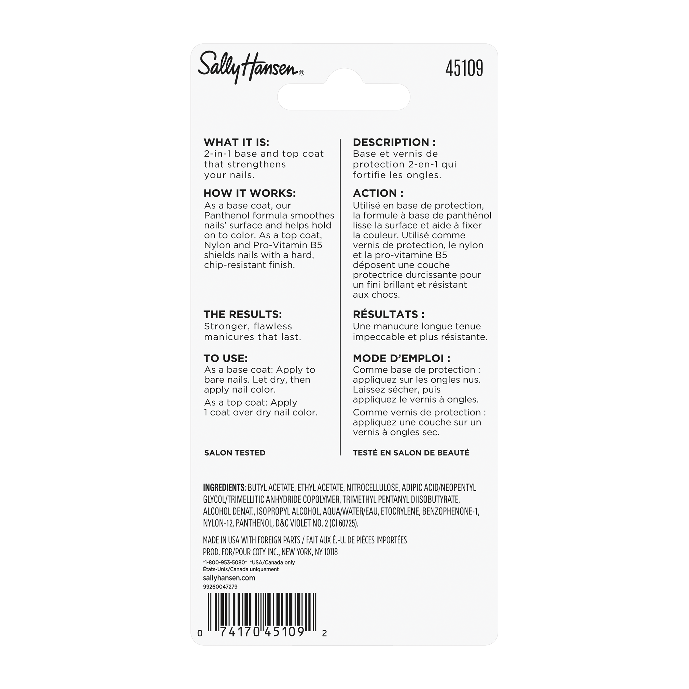 Sally Hansen posilující lak na nehty Top + Base pro zářivé a odolné nehty, nehty jsou chráněny pevnou, zářivou a odolnou vrstvou.
