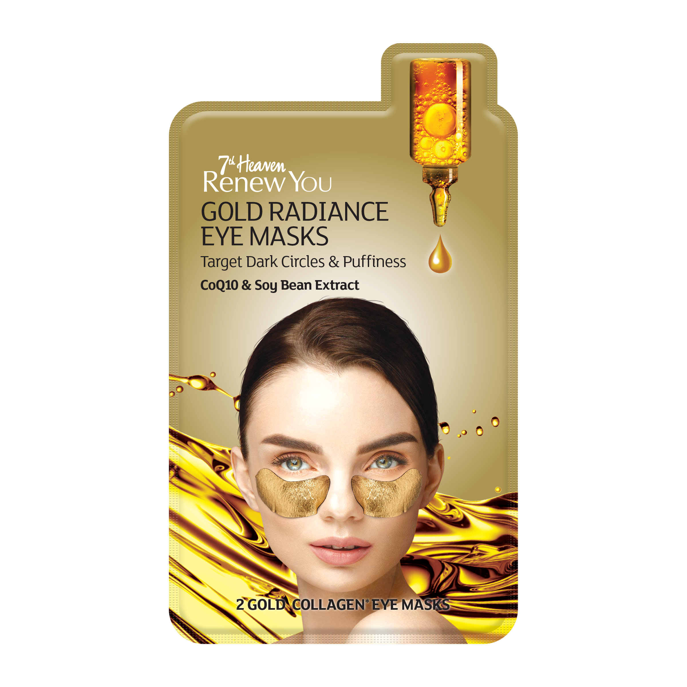 Oční maska 7th Heaven Renew You Gold Radiance pomáhá oživit unaveně vyhlížející oční okolí a dodat mu svěží, rozjasněný vzhled. Díky obsahu aktivních látek přispívá k redukci tmavých kruhů a váčků pod očima. Luxusní zlaté polštářky jsou obohaceny o koenzym Q10 a extrakt ze sójových bobů, které podporují hydrataci, výživu a revitalizaci jemné pokožky kolem očí.