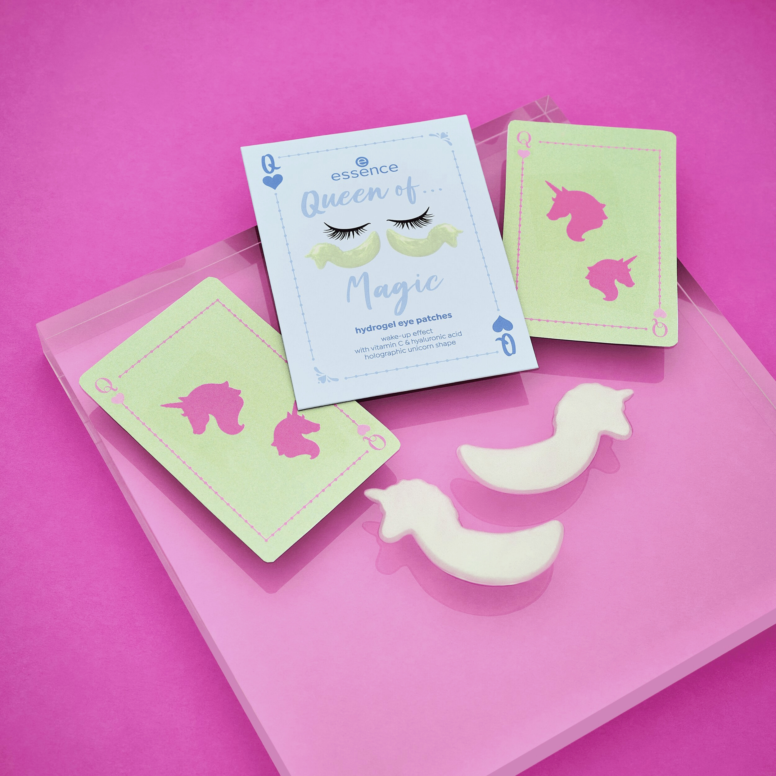 essence Queen of... hydrogelové polštářky pod oči jsou ideální volbou pro osvěžené a rozjasněné okolí očí. Každé balení obsahuje pět jedinečně navržených a barevných párů polštářků pod oči ve tvaru jednorožců, hvězd, motýlů, srdíček a delfínů. Jedna z masek rozhodně zaujme svým duhovým třpytem, ale všechny mají jedno společné: zářivé barvy a jemné třpytivé efekty. Obsahují vitamín C a kyselinu hyaluronovou, aby hydratovaly a rozjasnily jemnou pleť pod očima. Tyto polštářky pod oči poskytují revitalizující efekt a zanechávají vaši pokožku svěží a plnou energie. Ať už bojujete proti známkám únavy, nebo chcete jen rychlé osvěžení, tyto polštářky poskytují dokonalé skincare řešení.
