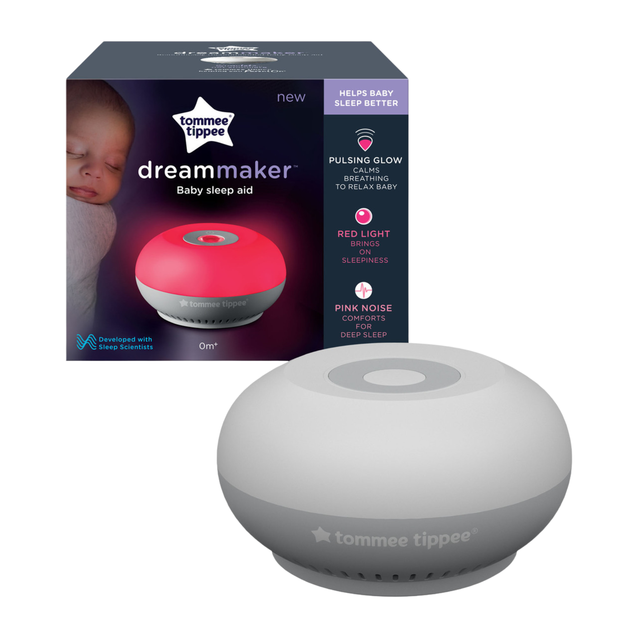 Zvukový a světelný pomocník pro spánek Tomme Tippee, vyvinutý ve spolupráci s vědci zabývajícími se spánkem, uvolní vaše dítě, povzbudí ho k hlubokému spánku a prodlouží délku jeho spánku.