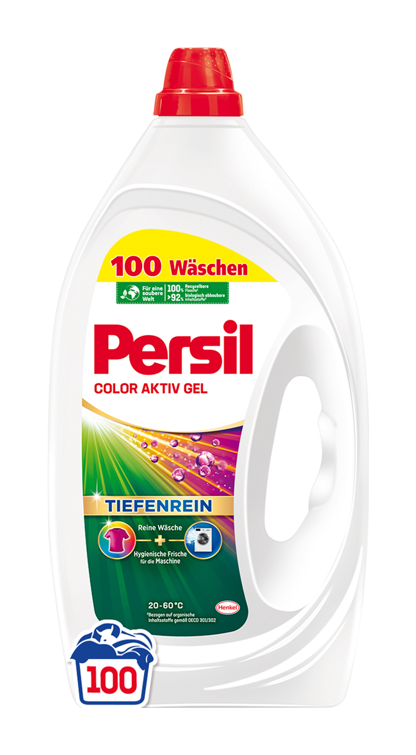 Za čistší svět: Tento tekutý prací prostředek určen k odstraňování skvrn z oblečení, je dodáván ve 100% recyklovatelném obalu* a obsahuje 92 % biologicky rozložitelných složek**.