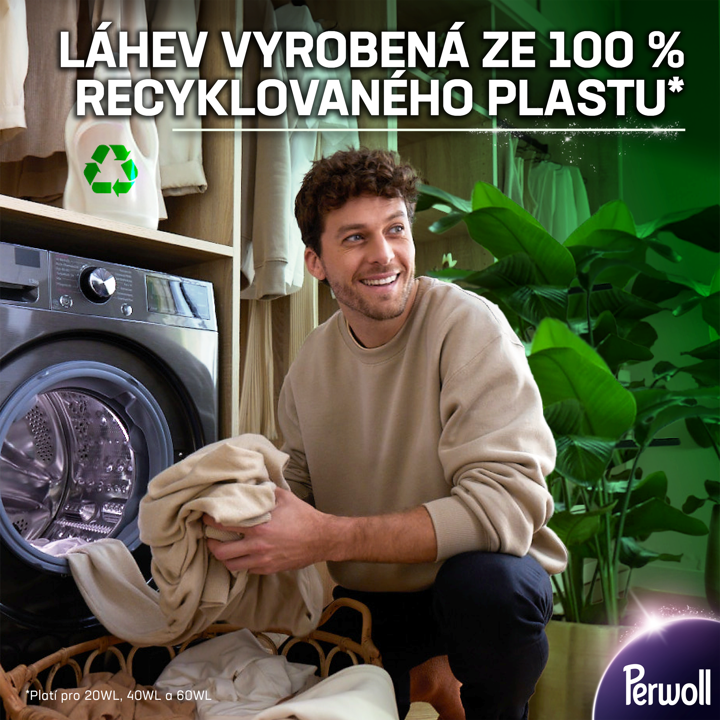 Zvolte si Perwoll, nový prací prostředek určený pro všechny světlé barvy a bílé oblečení, který přesahuje rámec běžného čištění, a dopřejte svému oblečení péči, kterou si zaslouží. Pečujte o své oblečení i o planetu: Složení obsahuje více než 95 % biologicky odbouratelných složek*. Láhev tekutého pracího prostředku je recyklovatelná (bez etikety a nálepky) a vyrobená ze 100 % recyklovaného plastu**. Varování: Způsobuje vážné podráždění očí. Může způsobit alergickou reakci.