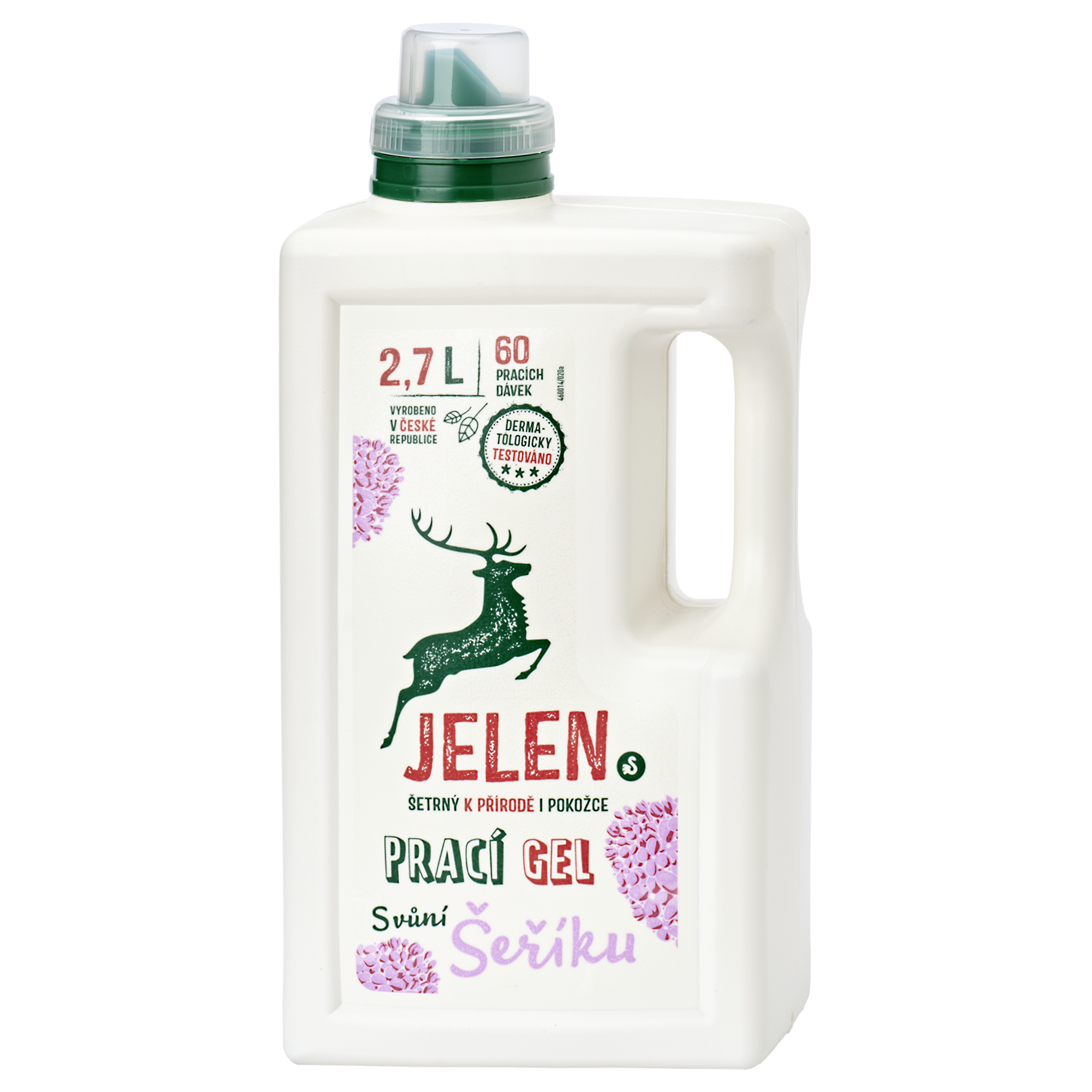 Každý květen u Jelenovy u babičky voněl šeřík. Aby domov mohl vonět celý rok, připravil jelen tento gel, který prádlo nejen krásně vypere, ale i provoní šeříkem. Prací gel je vhodný na praní prádla bílého i stálobarevného.