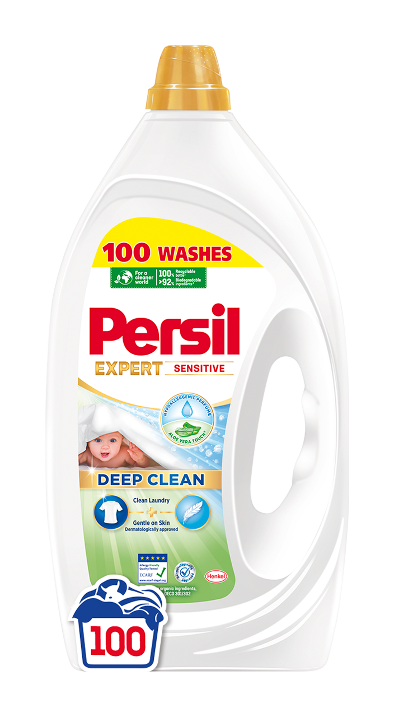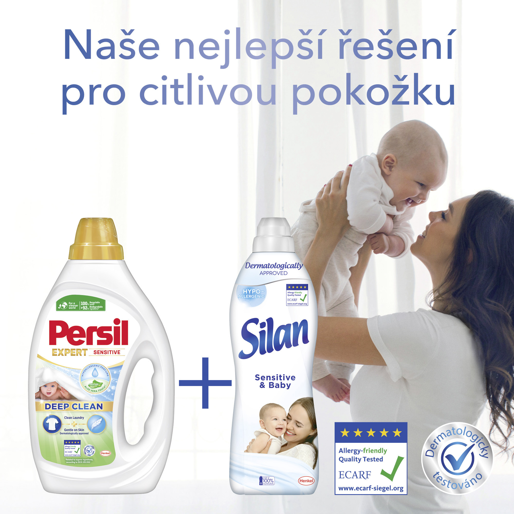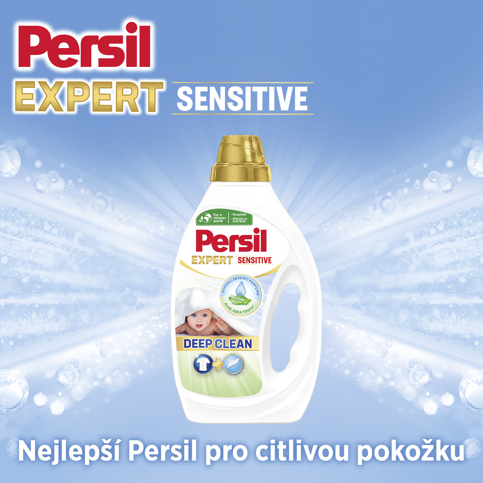 Zažijte sílu pracího gelu Expert Sensitive se silným čisticím účinkem šetrným k pokožce. Persil Expert Sensitive, vyvinutý ve spolupráci s odborníky dermatology, kombinuje účinnost přírodního mýdla s vylepšenou úrovní péče a ochrany citlivé pokožky, takže je skvělým pracím prostředkem pro děti nebo alergiky. Prací prostředek Sensitive má dermatologicky testované složení¹, které bylo vyvinuto s hypoalergenní parfemací a obohaceno o známou složku zklidňující pokožku Aloe Vera.