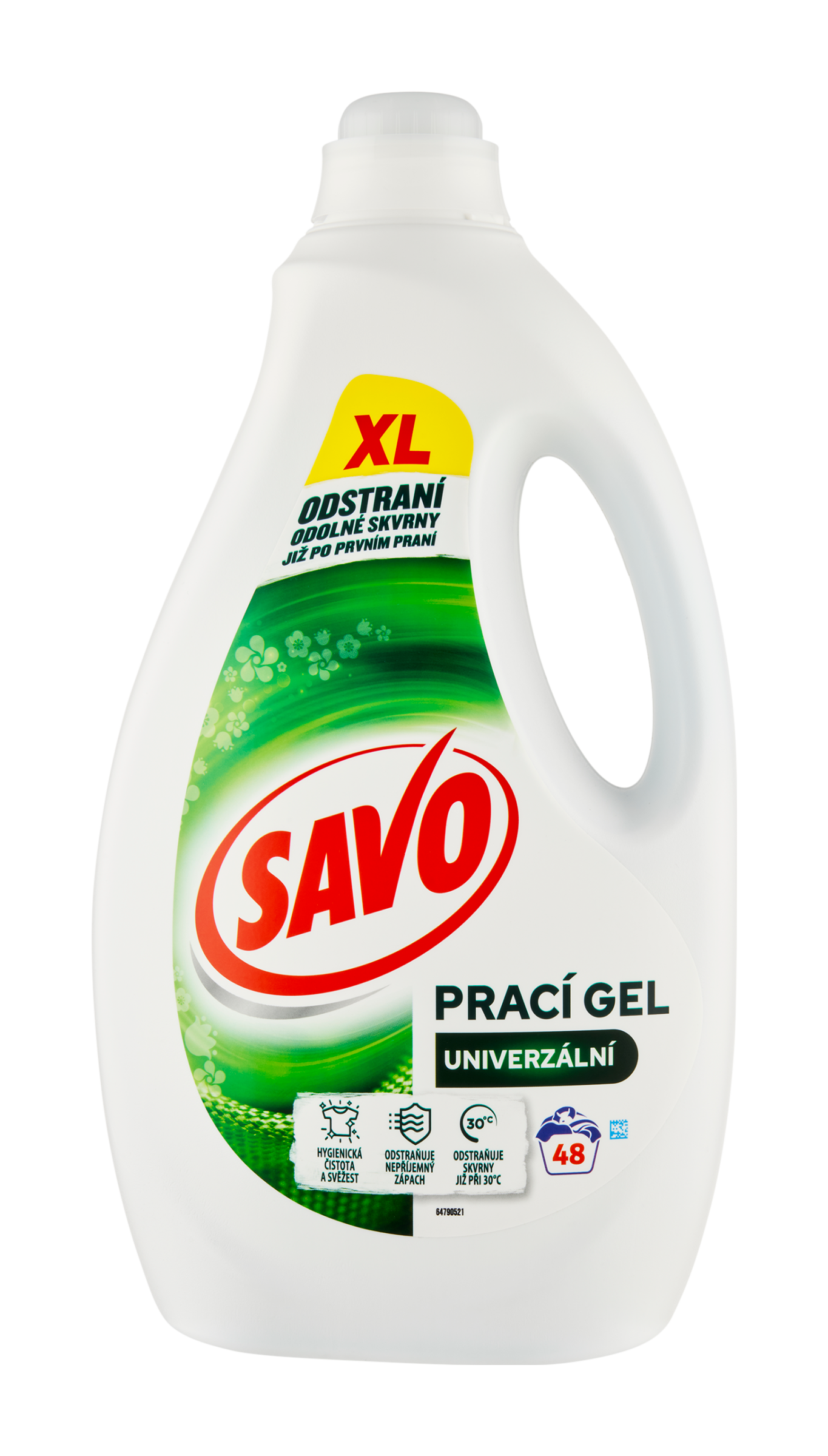 Savo prací gel - odstraní skvrny již po prvním praní! Účinný i při rychlých cyklech a praní ve studené vodě. Tento prací gel účinně odstraňuje skvrny i při krátkých pracích cyklech a ušetřit energii můžete také při studenější vodě! Dlouhotrvající svěžest až po dobu 14 dní. Vaše prádlo bude vonět svěže až 14 dní po praní. Připravte se na dlouhotrvající pocit čistoty! Zachovává zářivé barvy oblečení S naším pracím gelem si můžete být jisti, že vaše oblíbené kousky zůstanou krásně barevné. Tento gel použijte na bílé i barevné prádlo.