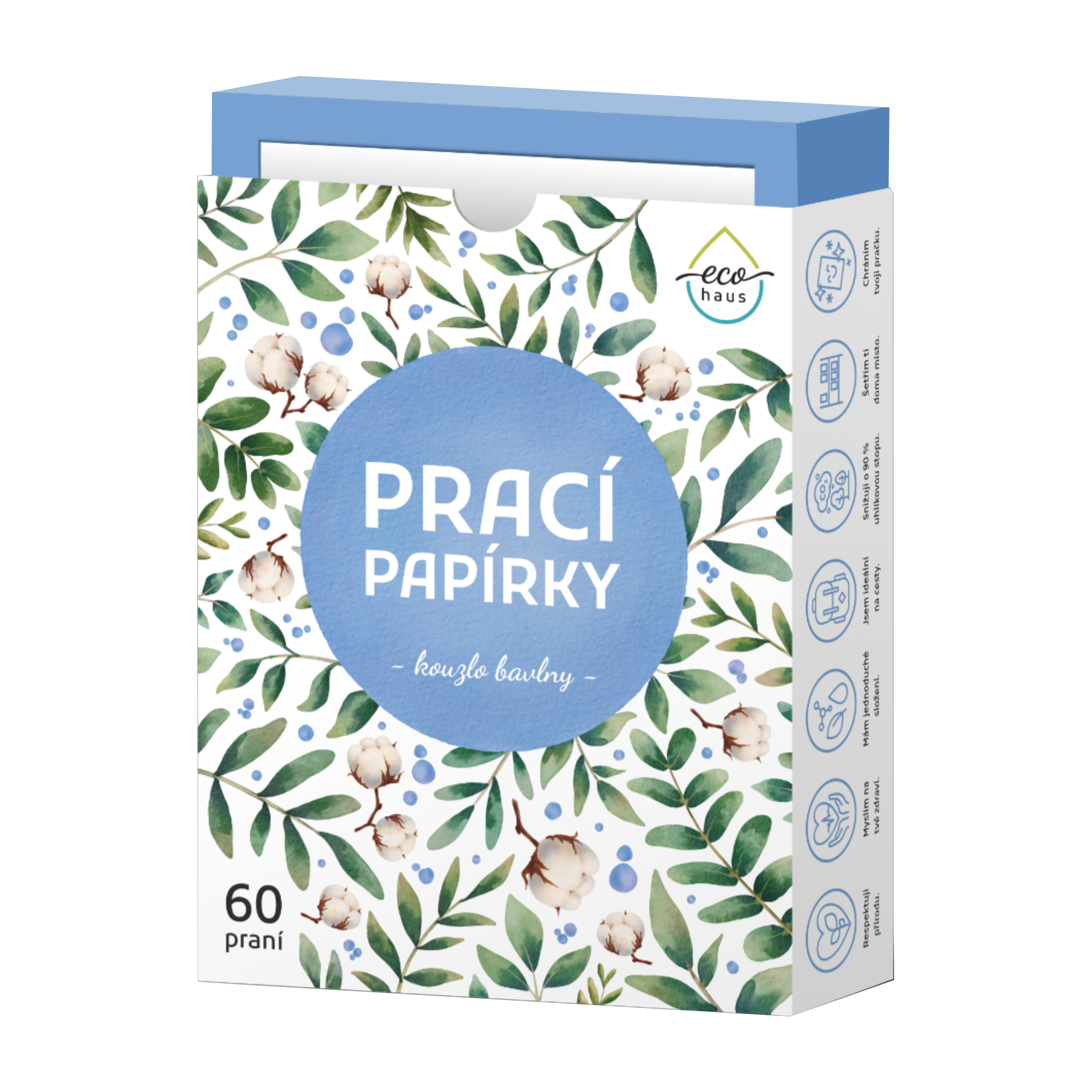Jediný produkt, který potřebuješ k efektivnímu a jednoduchému praní. Prací papírek jednoduše vložíš do pračky a on se během několika vteřin rozpustí a vytvoří gel, který tvé prádlo dokonale vypere. Prací papírek EcoHaus je multifunkční: hodí se pro praní v pračce i ruční praní, pro čištění koberců nebo čalounění, a můžeš si z něho udělat také čisticí sprej. Perfektně se hodí domů i na cesty. Papírek je vhodný pro citlivou i dětskou pokožku a šetrný k materiálům jako je vlna či hedvábí.