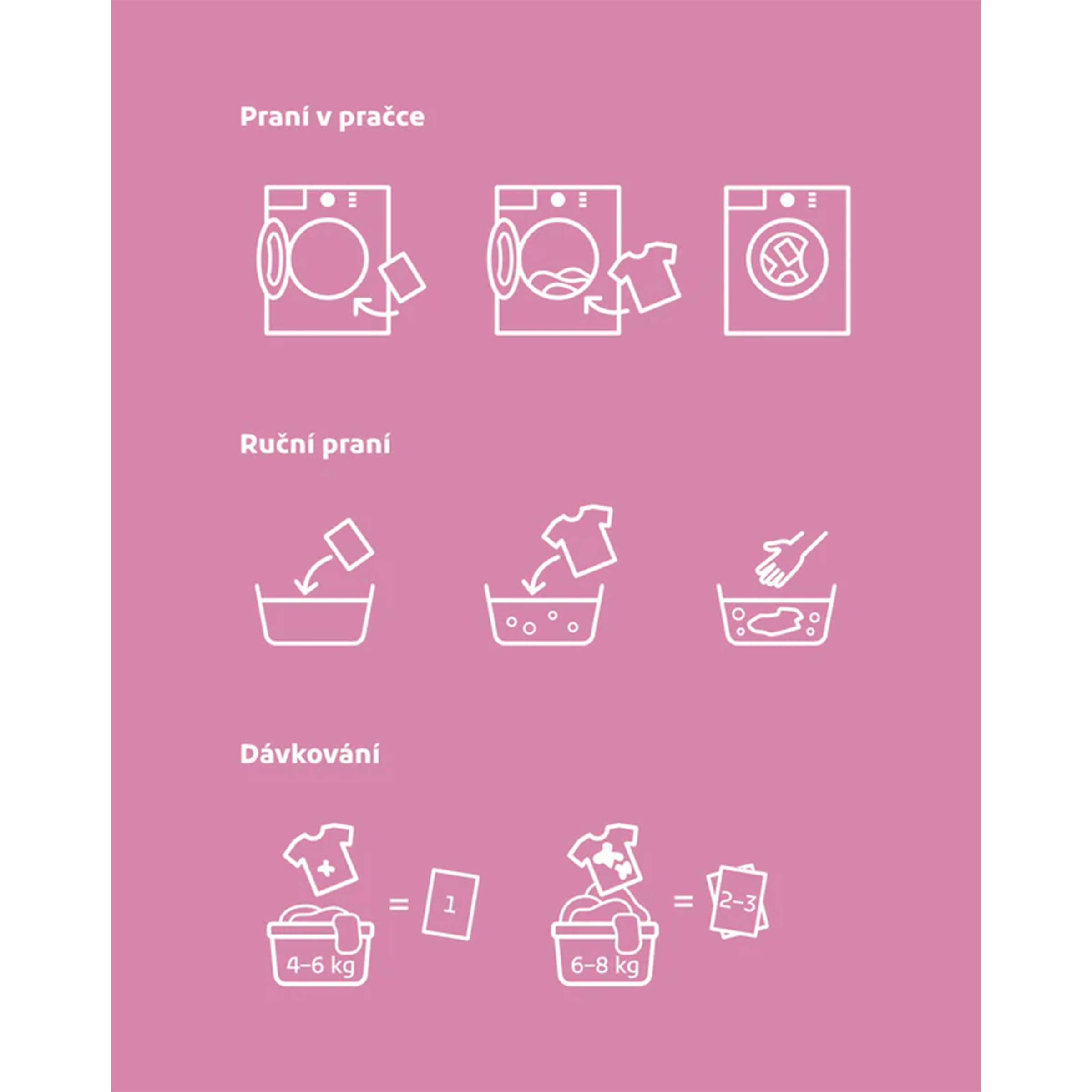 - Rozpustí se při nízkých i vysokých teplotách. Je vhodný také při rychlém programu. Důležité je do bubnu pračky vkládat nejdříve prací papírek, a pak až oblečení.