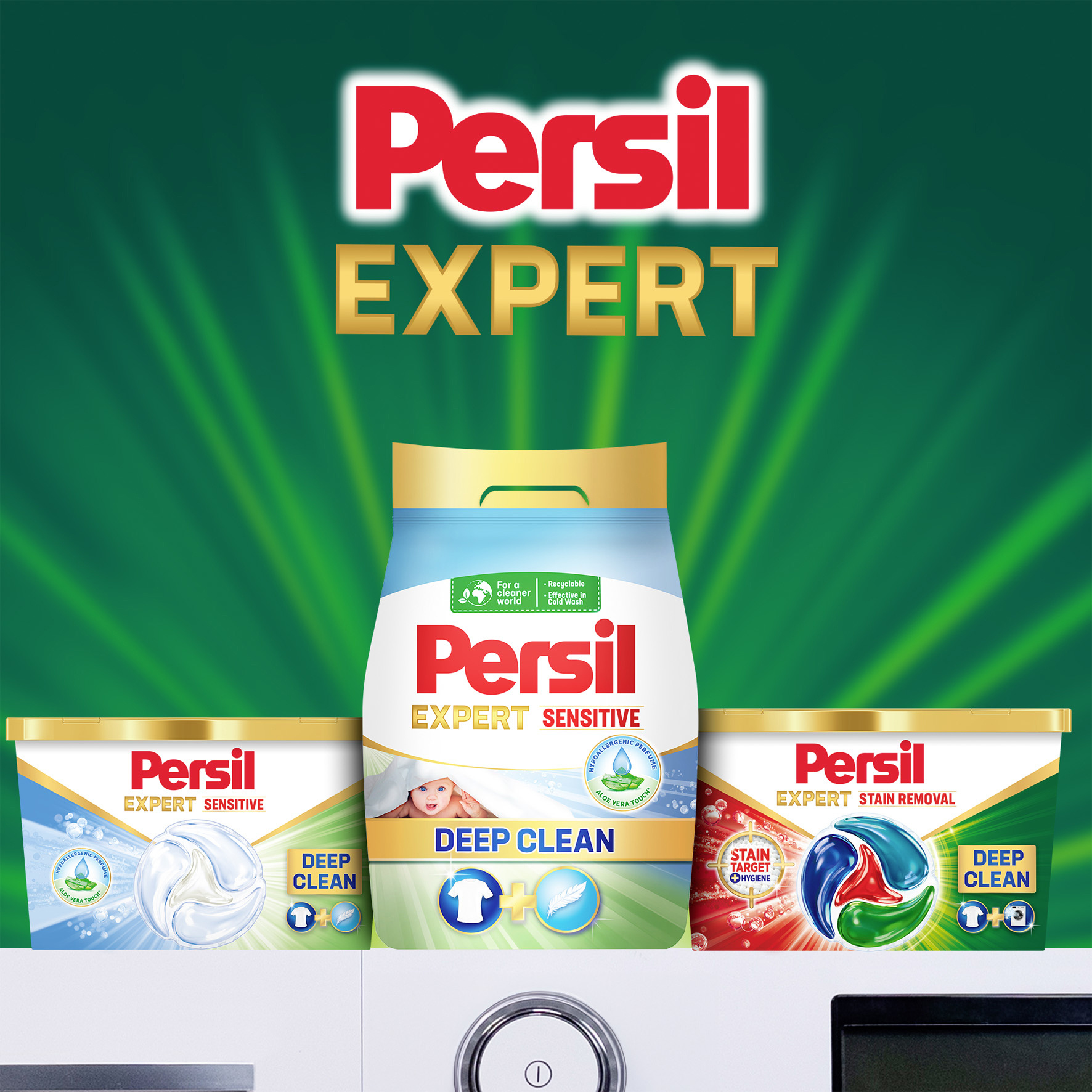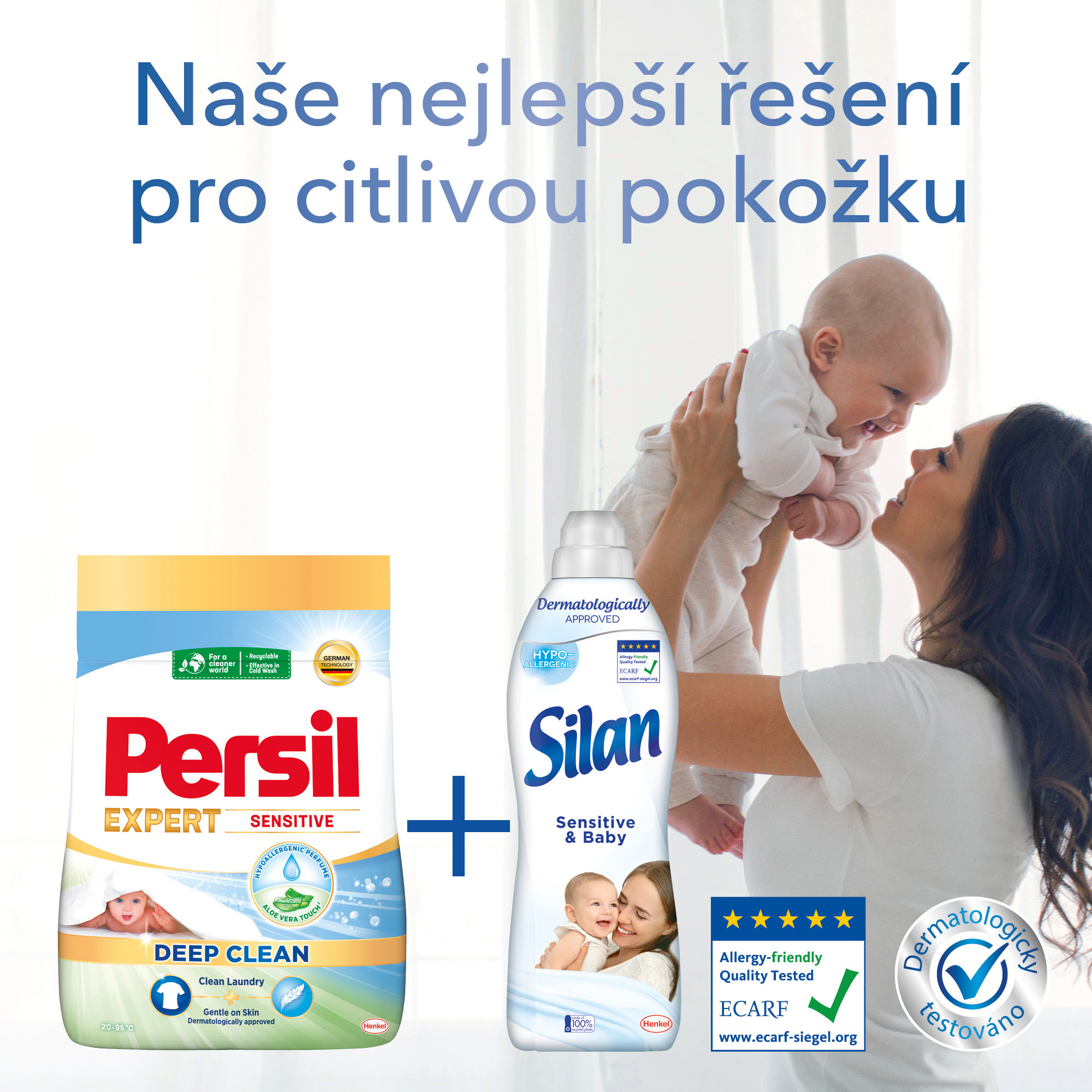 Prací prášek Persil Expert Sensitive Deep Clean nabízí zvýšenou péči a ochranu citlivé pokožky, díky čemuž je ideální volbou pro děti i alergiky. Dermatologicky testované složení¹ pracího prostředku pro citlivou pokožku s hypoalergenní parfemací je obohacené o zklidňující aloe vera a přírodní mýdlo, které šetrně pečují o pokožku.