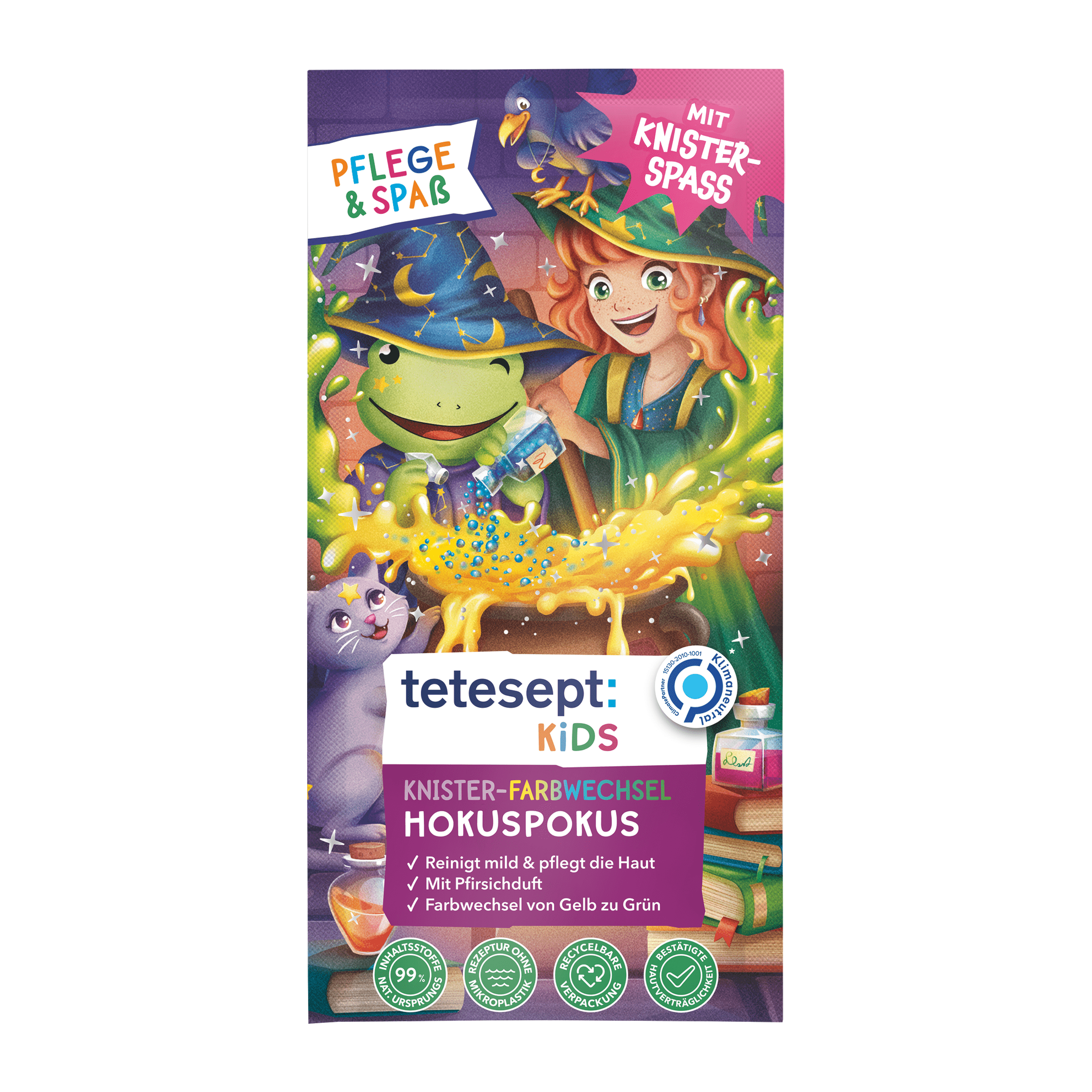 Tetesept sůl do koupele s kouzelnými barvami uvnitř obsahuje speciální kombinaci určenou pro citlivou dětskou pokožku, a to díky obsahu makadamového oleje a kakaového másla. Z běžné koupele se stane nekonečná zábava, která vykouzlí úsměv nejen dětem, ale i jejím blízkým. Po celou dobu koupele vás bude doprovázet příjemná vůně po čerstvých broskvích. Bez silikonů, parafínů a minerálních olejů.