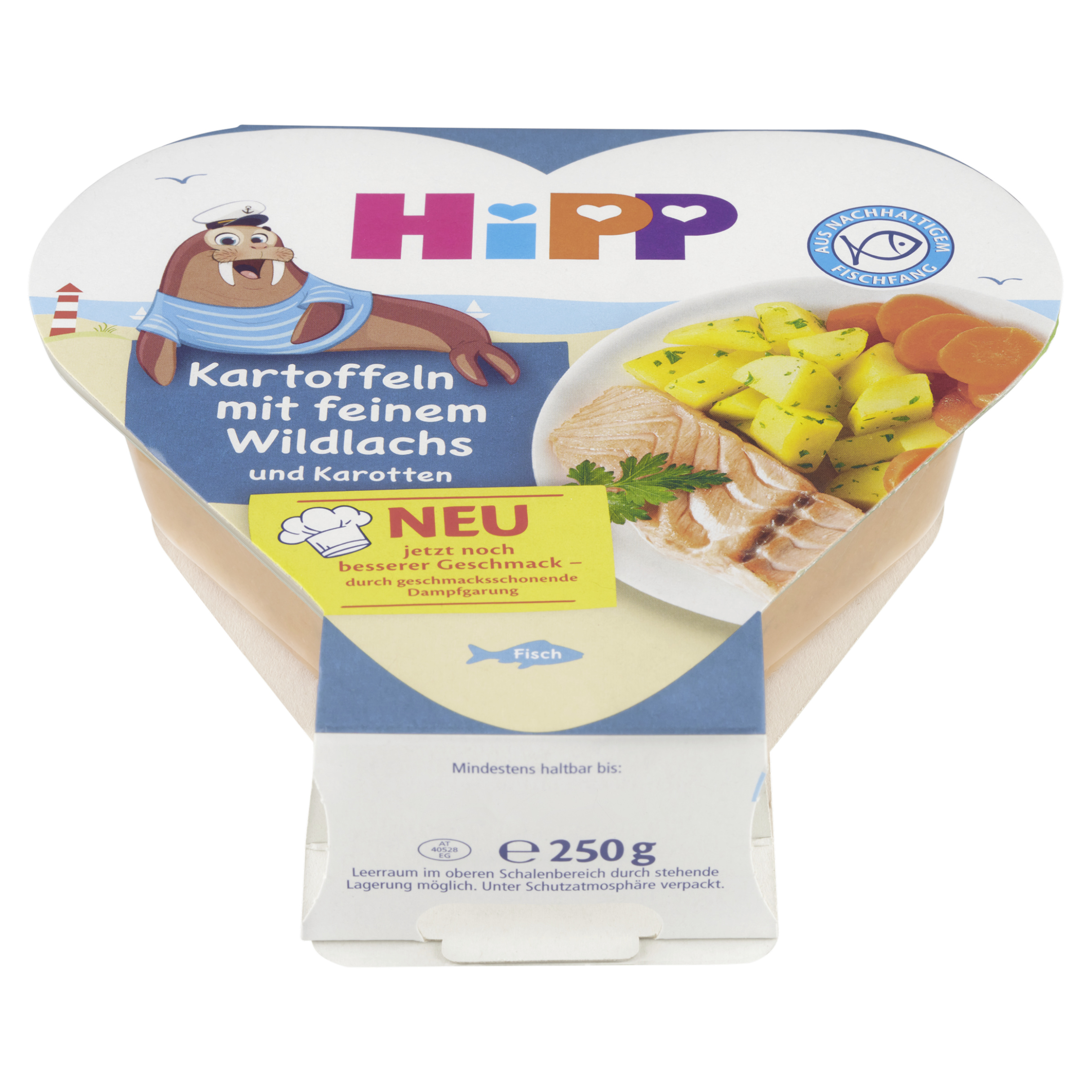 S dětskými hotovými pokrmy HiPP v praktických plastových srdíčkách nabízíte svým malým fajnšmekrům zdravá a rozmanitá jídla. Nově plastová srdíčka rozšiřujeme o HiPP Brambory se zeleninou a jemným lososem. Pokrm je připravovaný tak, aby dokonale uspokojil nutriční potřeby malých dětí. Mimořádně praktická je nerozbitná dětská plastová miska. Jídlo v ní lze snadno a rychle ohřát v horké vodní lázni nebo v mikrovlnné troubě.
