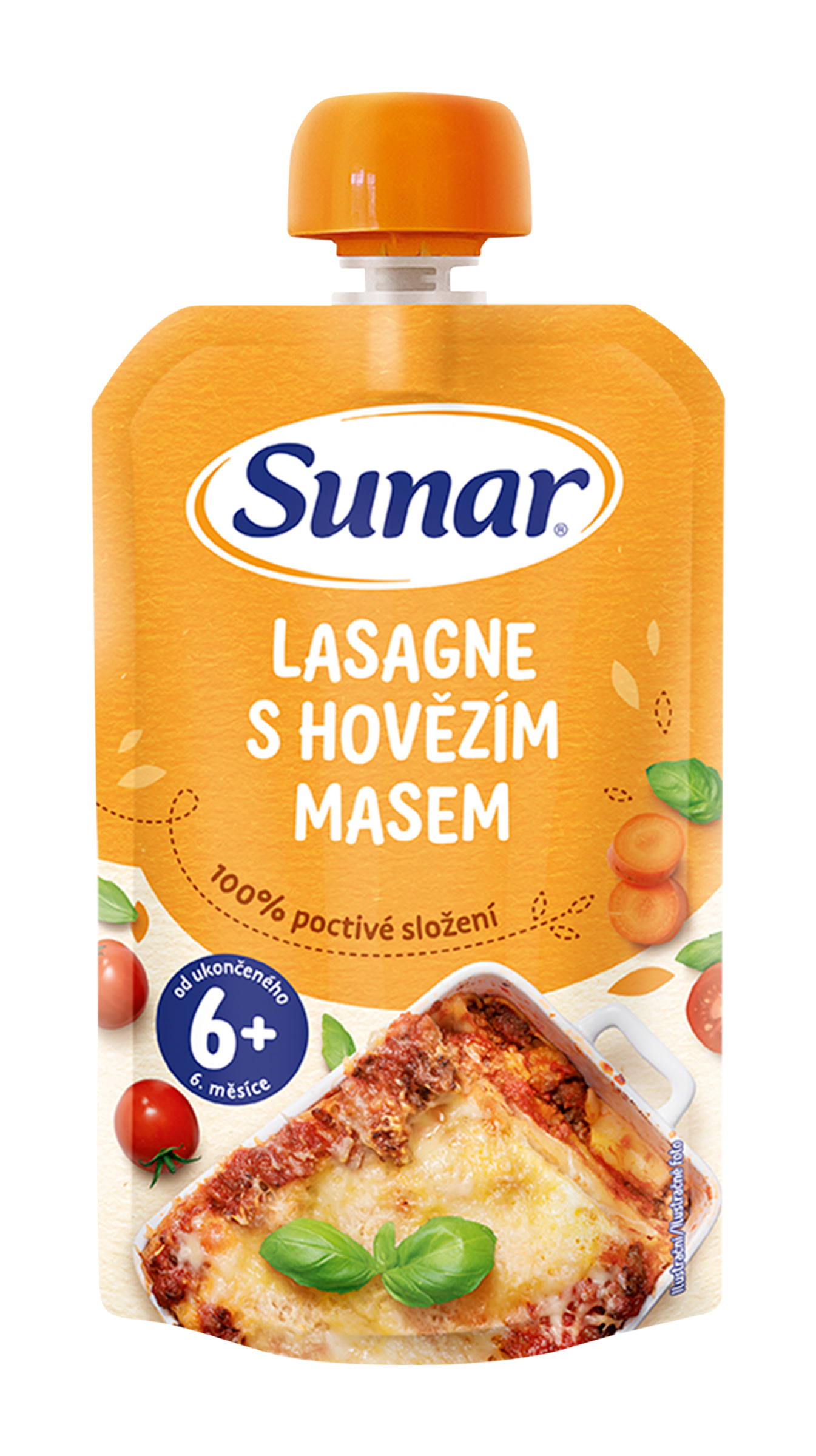 Sunar příkrm Lasagne s hovězím masem je hotové jídlo v praktickém obalu, které můžete mít kdykoliv s sebou. Příkrmy vhodný od ukončeného 6. měsíce. Jemná konzistence bez kousků zajistí snadné vytlačení obsahu z kapsičky. Během chvilky můžete servírovat chutné jídlo k obědu či večeři. Bez přidané soli**, ze 100 % poctivých surovin v té nejvyšší baby kvalitě. Navařeno hravě a s chutí.